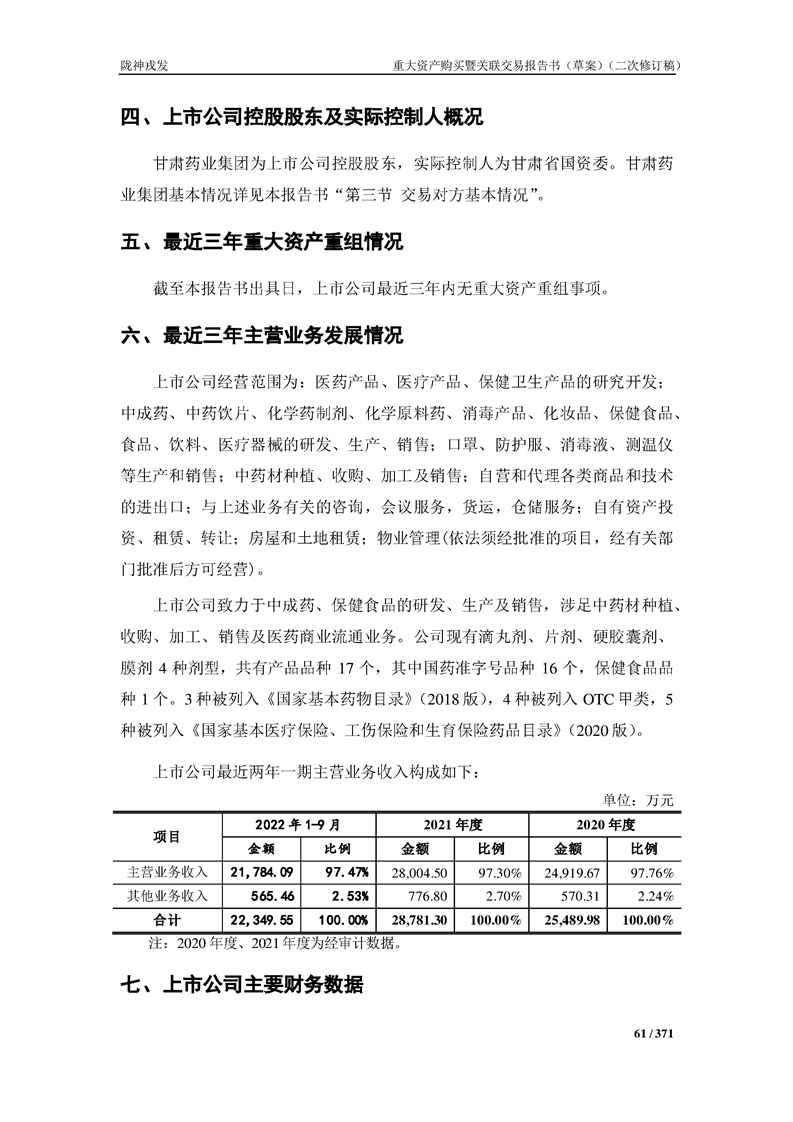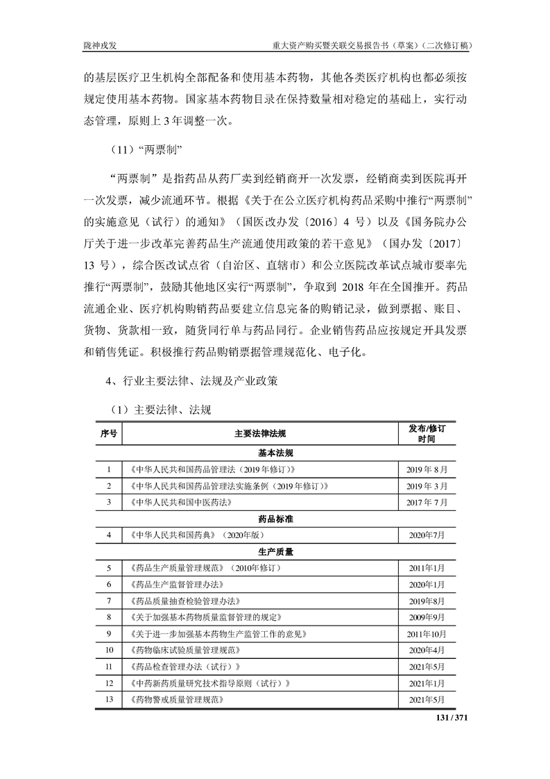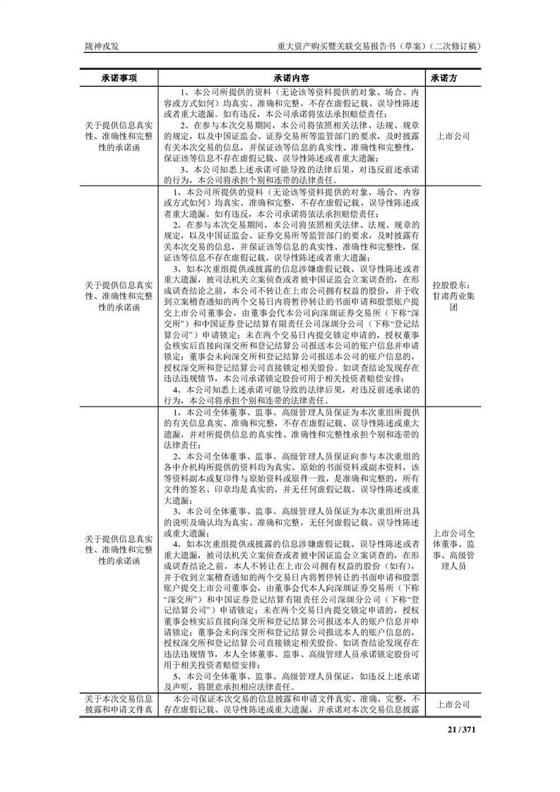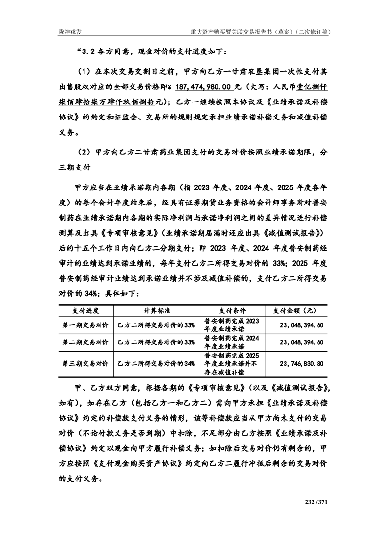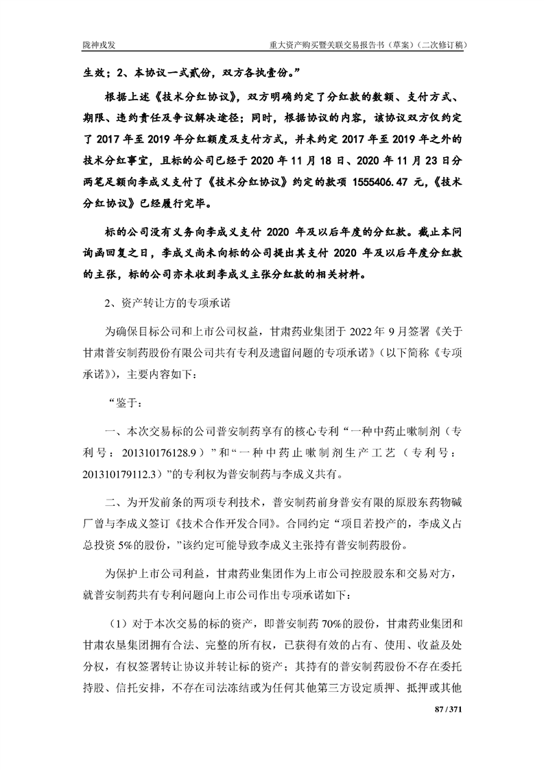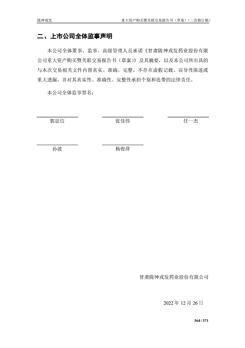 甘肃陇神戎发药业股份有限公司重大资产购买暨关联交易报告书(草案)摘要(二次修订稿)
