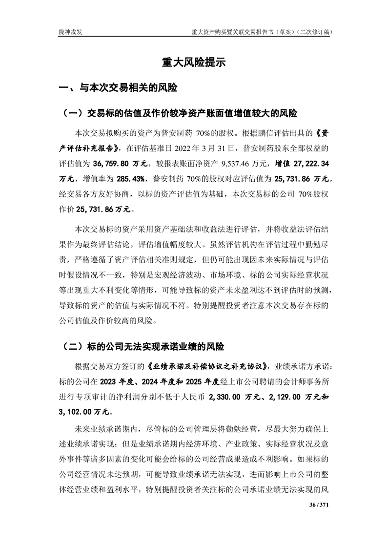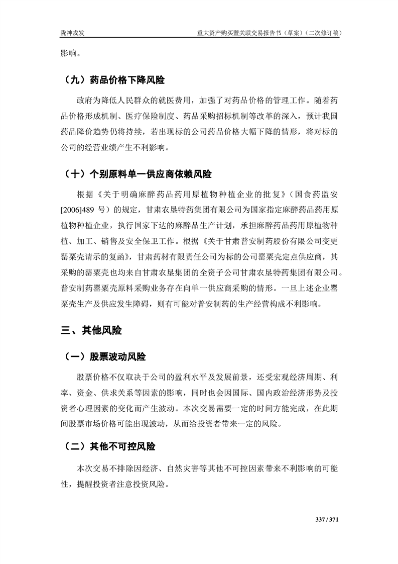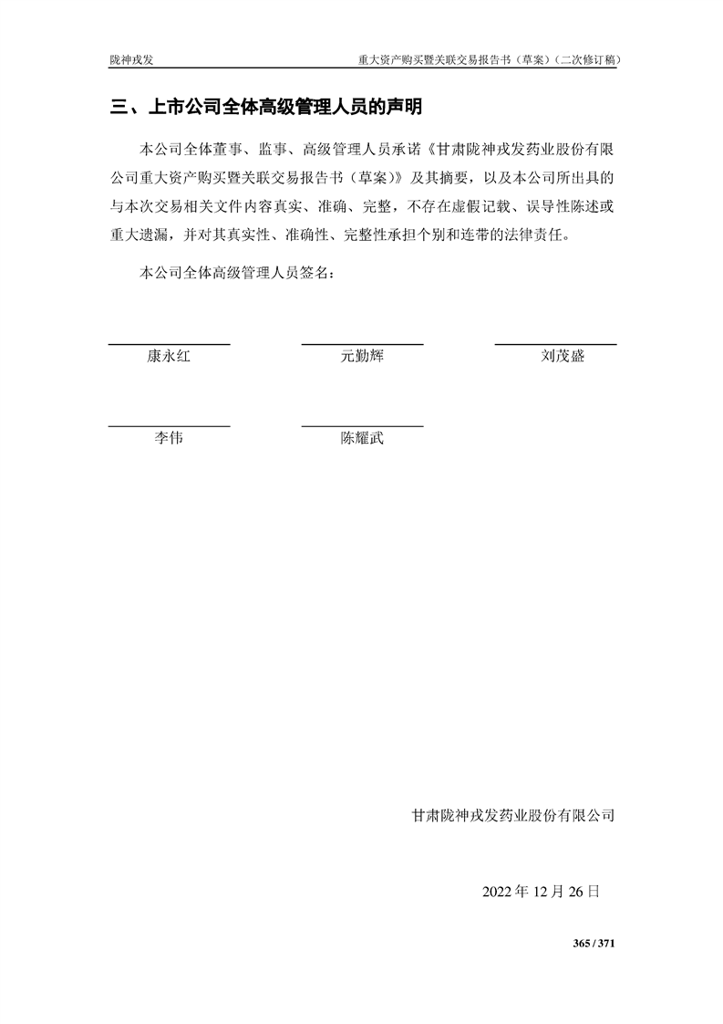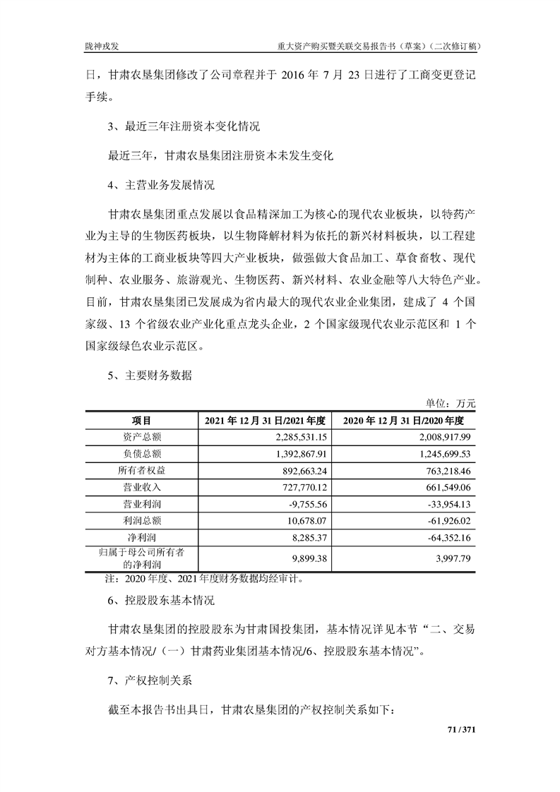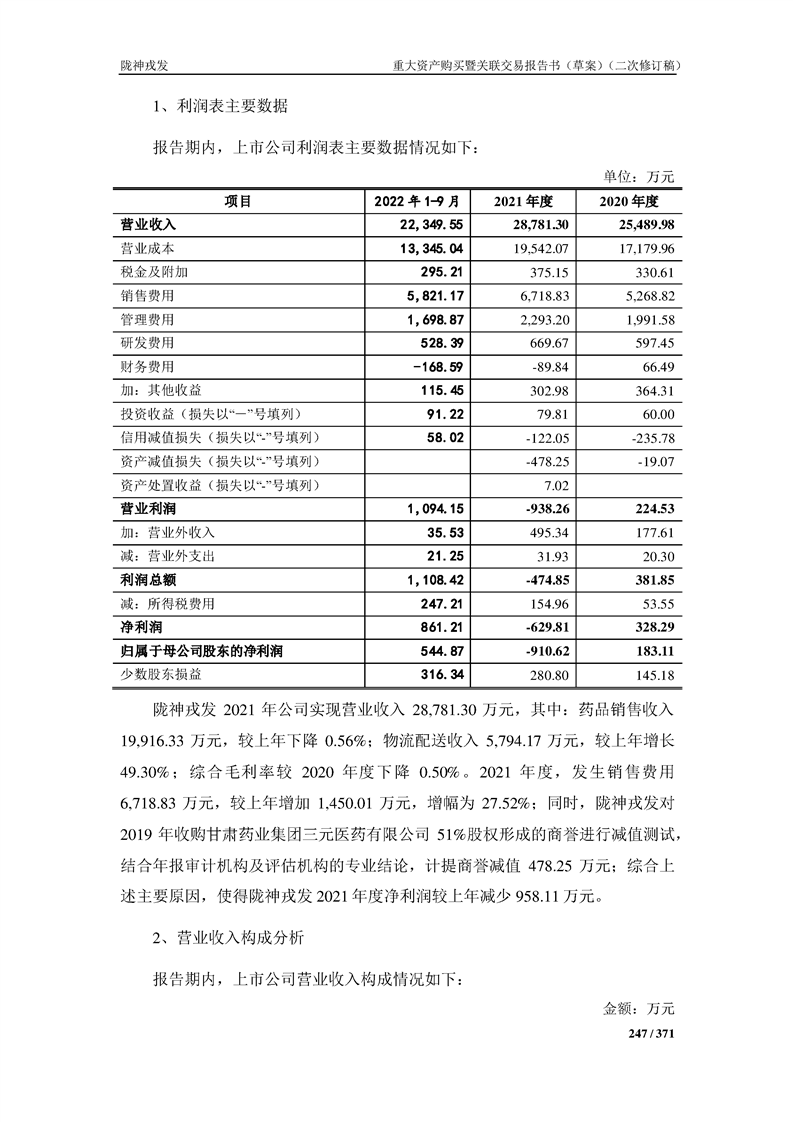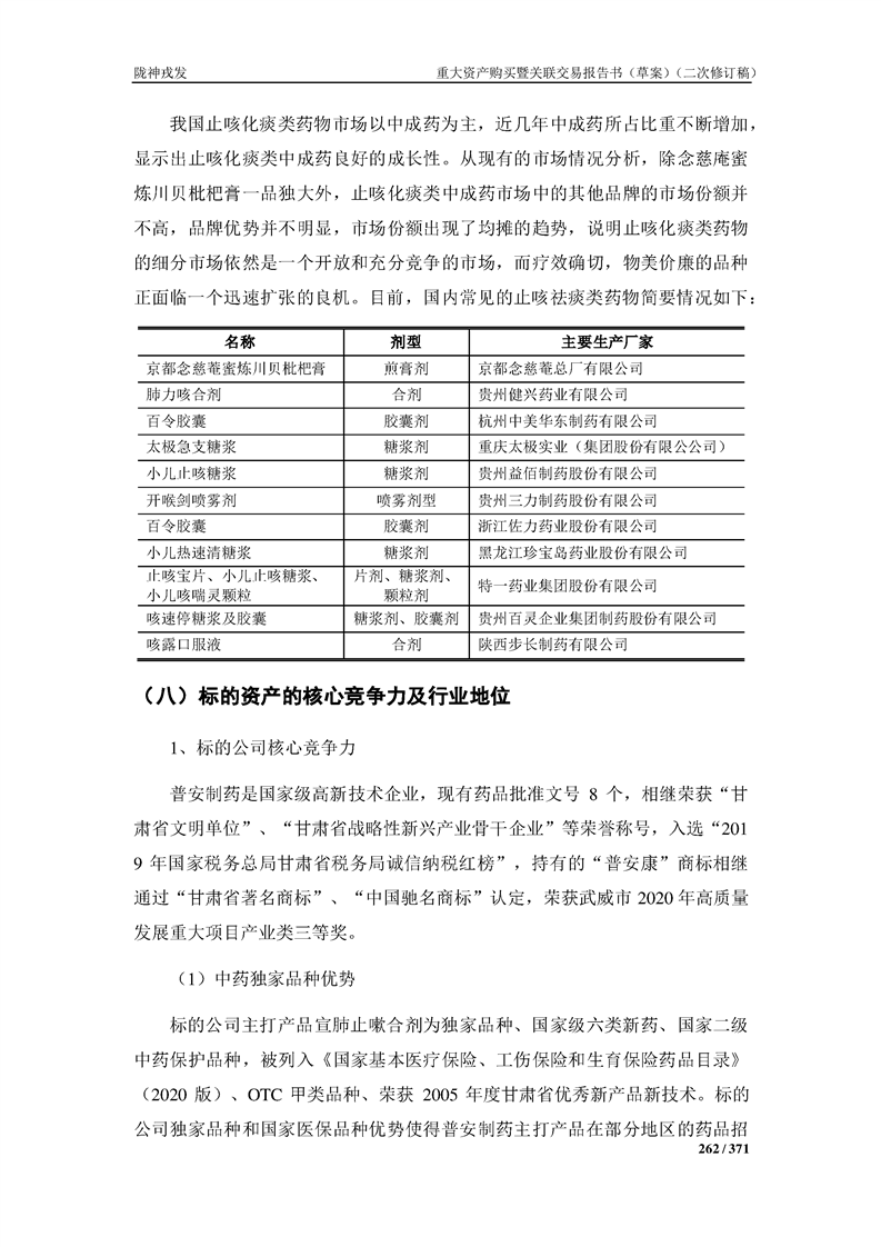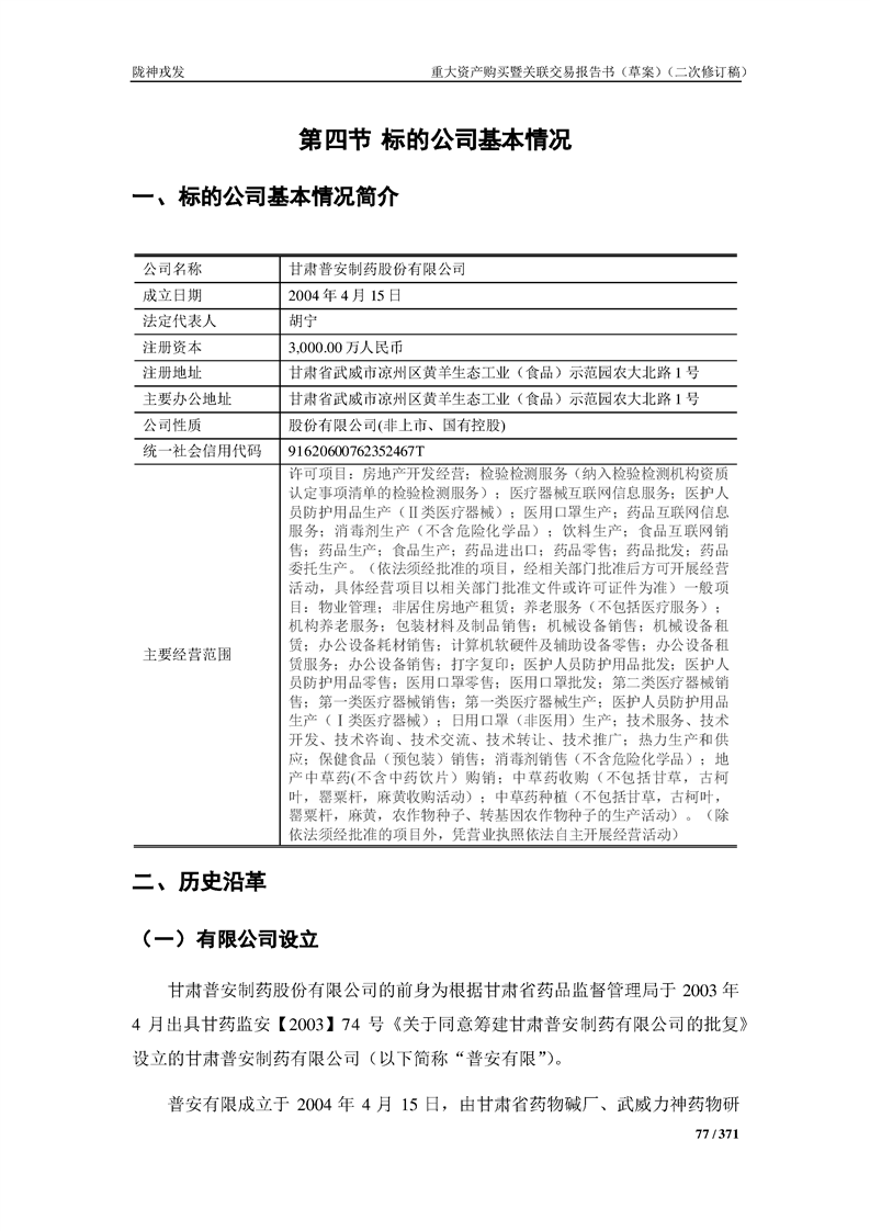 甘肃陇神戎发药业股份有限公司重大资产购买暨关联交易报告书(草案)摘要(二次修订稿)