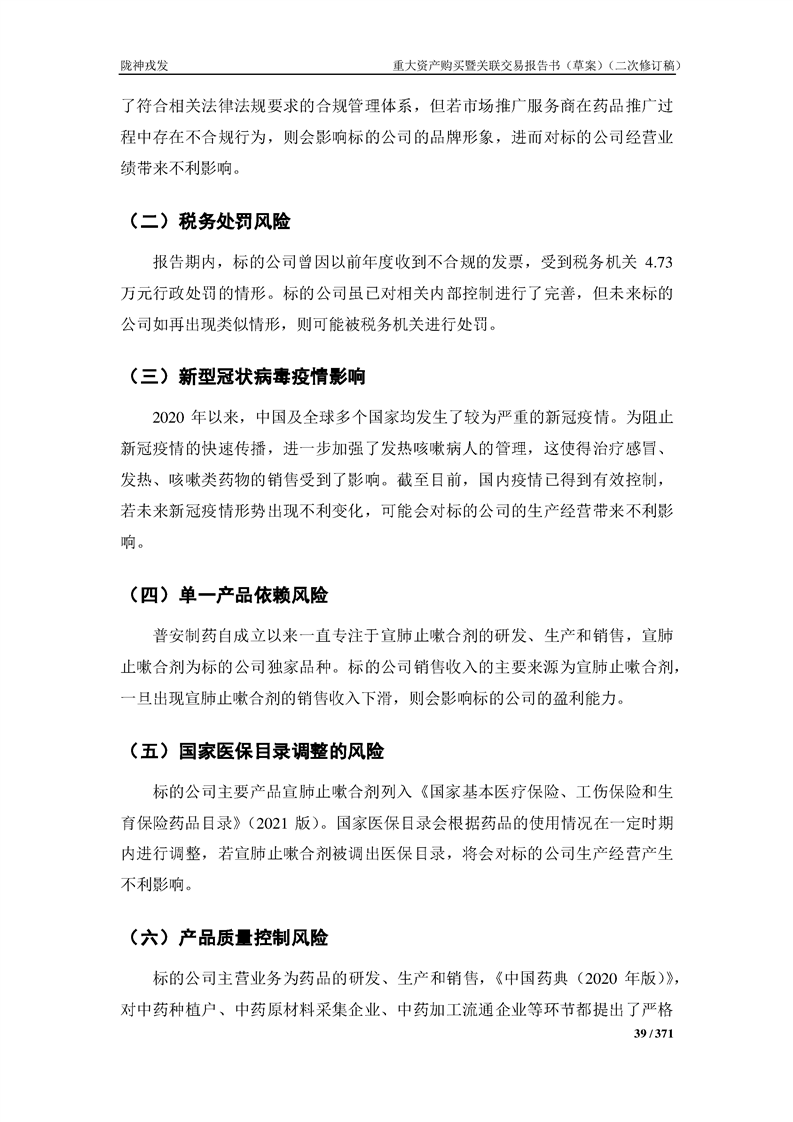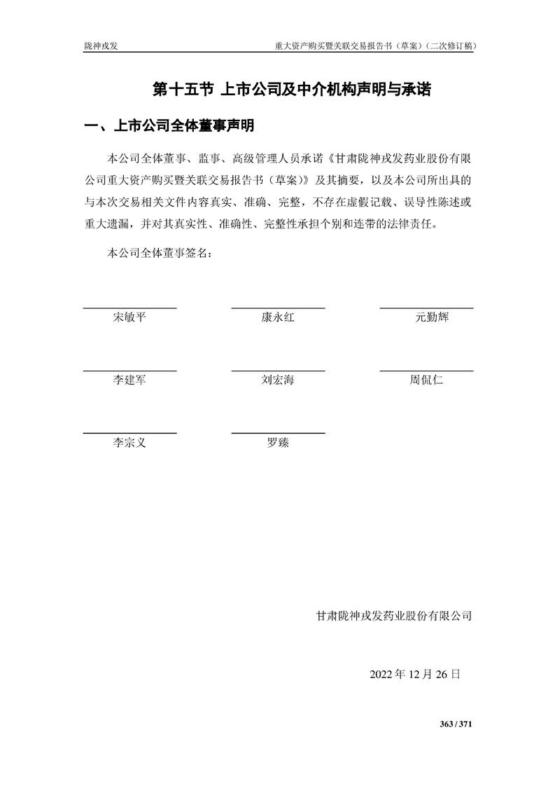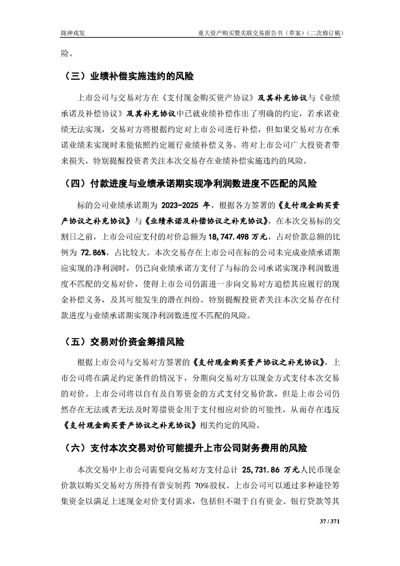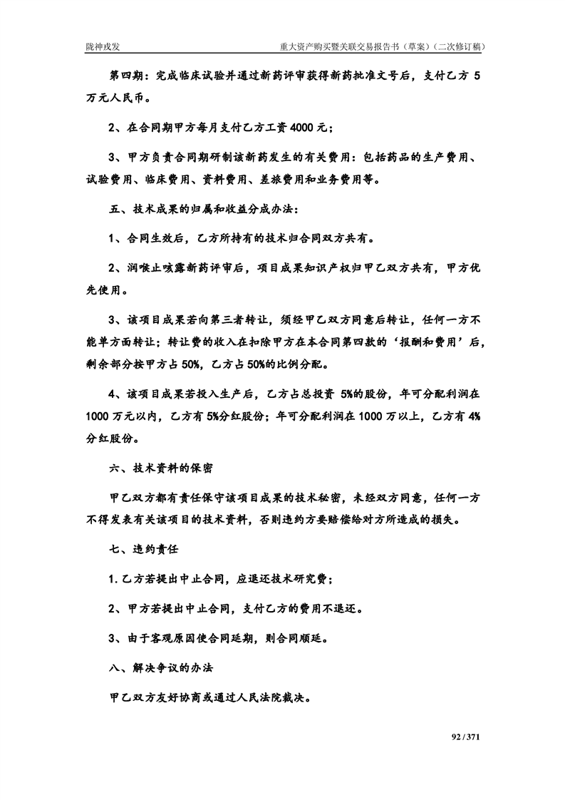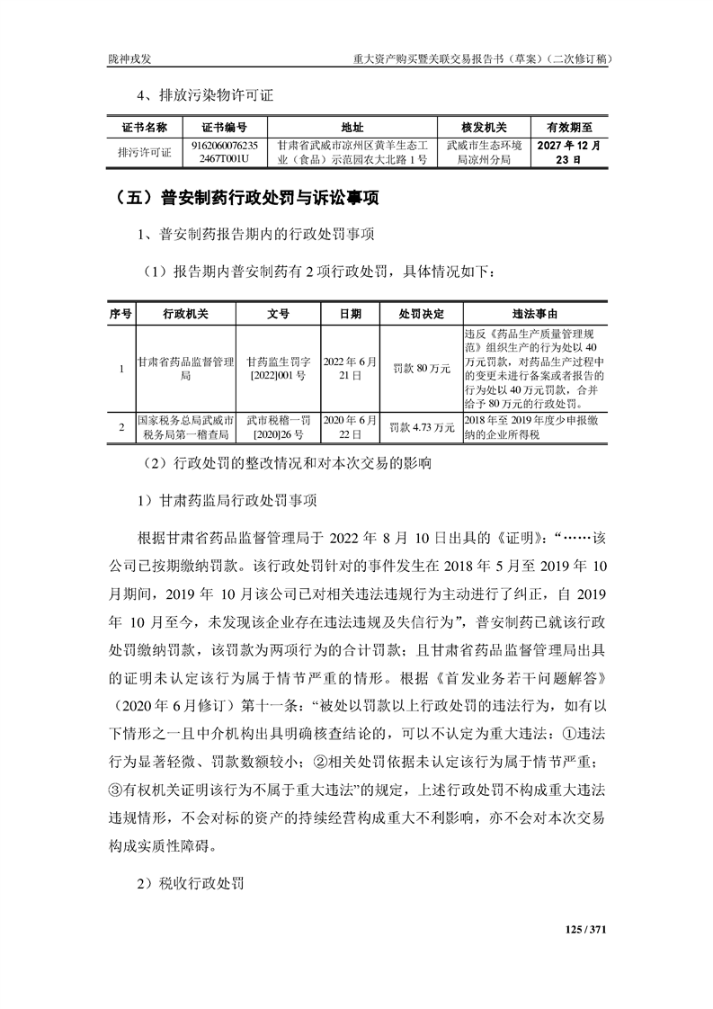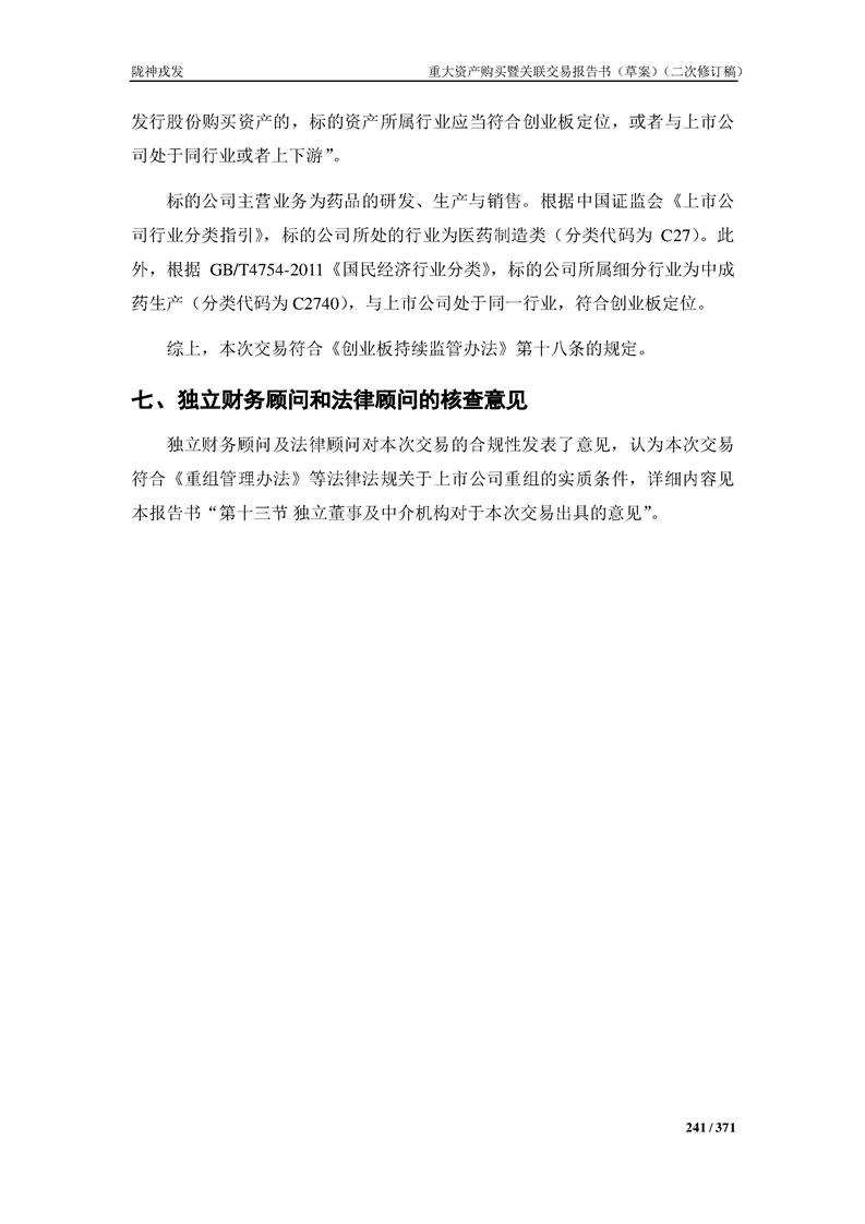 甘肃陇神戎发药业股份有限公司重大资产购买暨关联交易报告书(草案)摘要(二次修订稿)