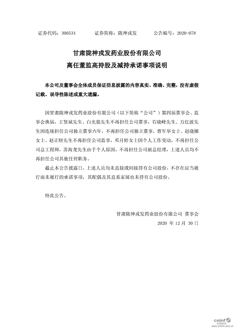 离任董监高持股及减持承诺事项说明