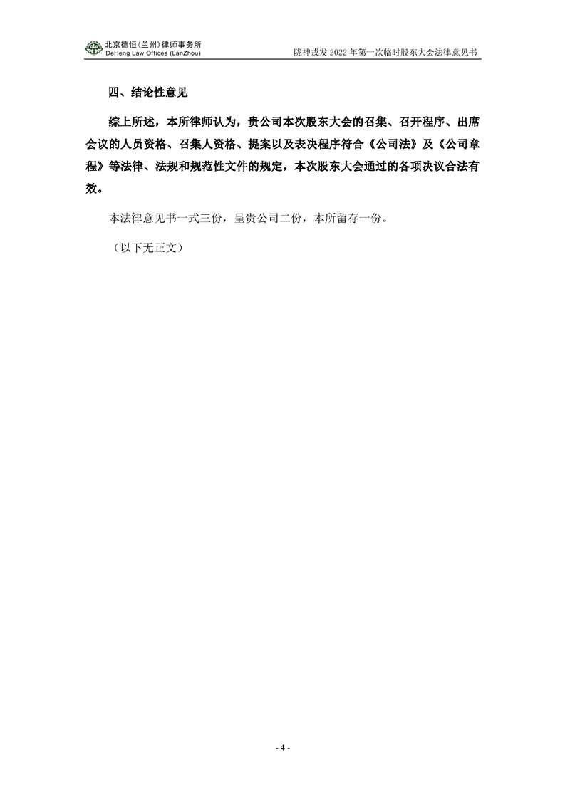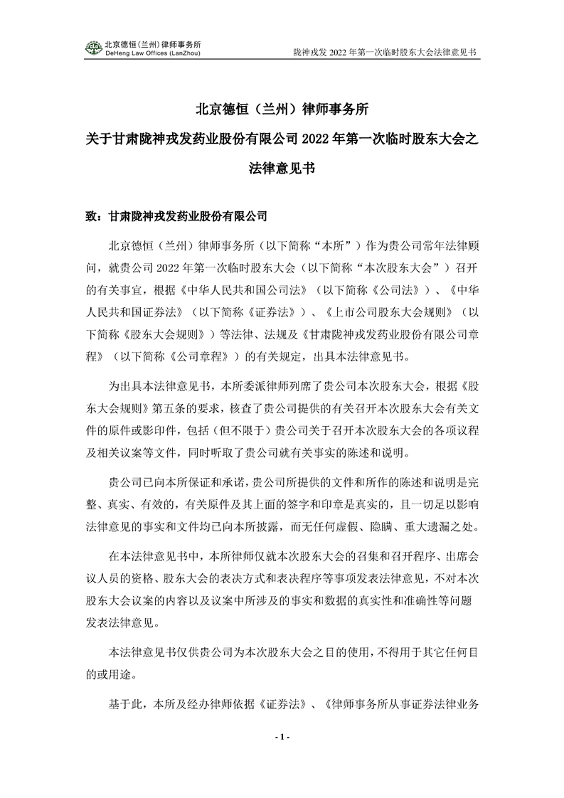2022年第一次临时股东大会法律意见书