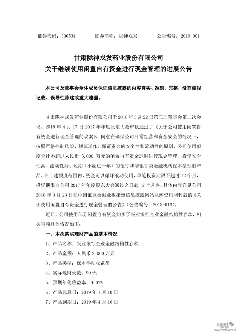 关于继续使用闲置自有资金进行现金管理的进展公告