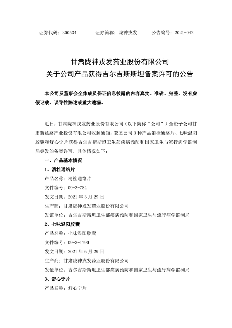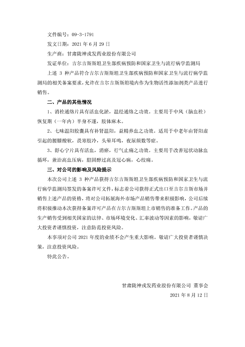 关于公司产品获得吉尔吉斯斯坦备案许可的公告