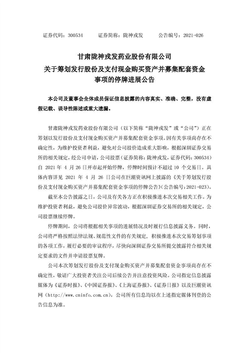 关于筹划发行股份及支付现金购买资产并募集配套资金事项停牌的进展公告