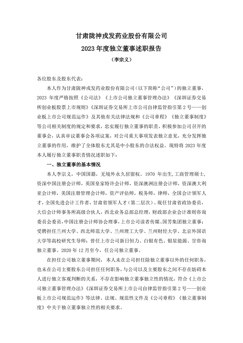 2023年度独立董事述职报告(李宗义)