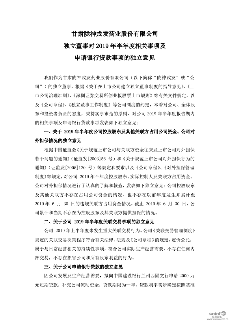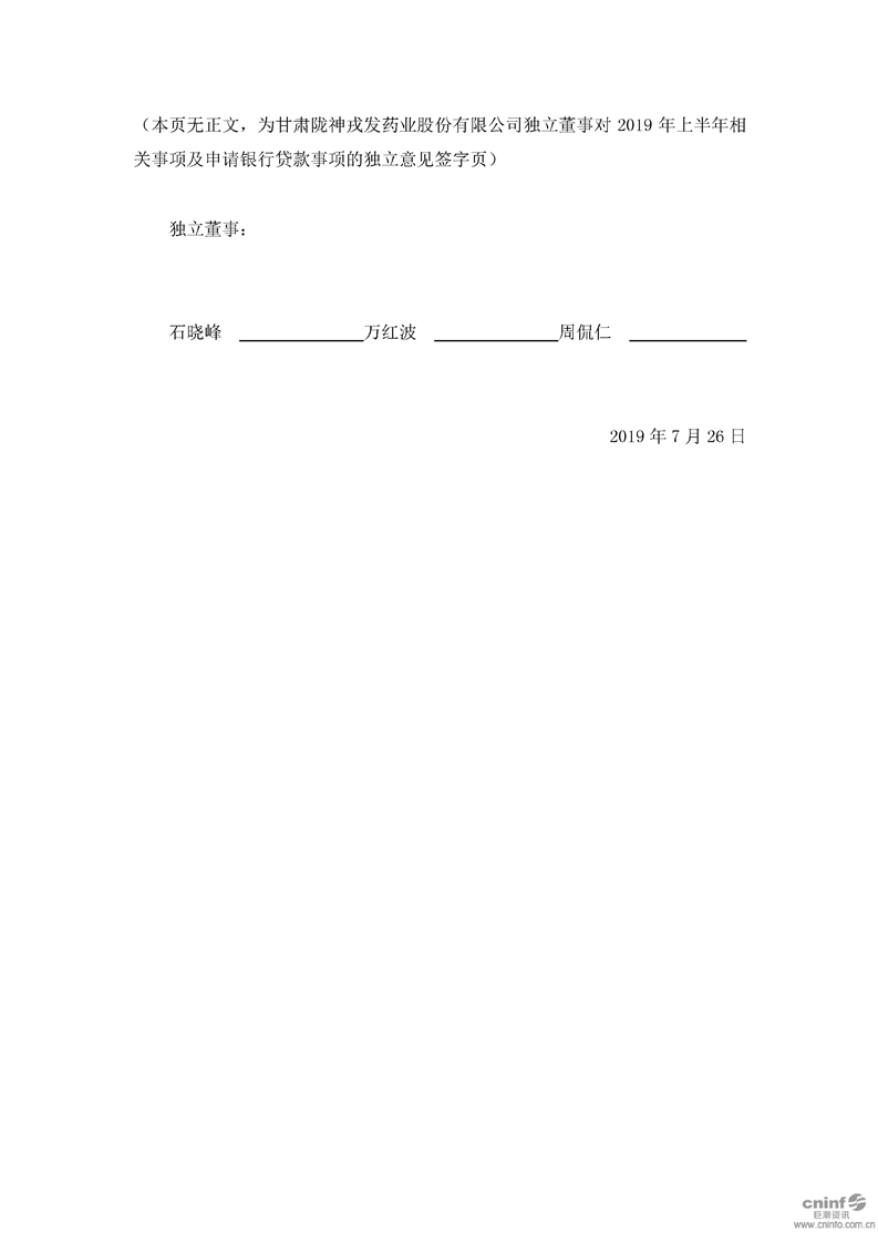 独立董事对2019年半年度相关事项及申请银行贷款事项的独立意见