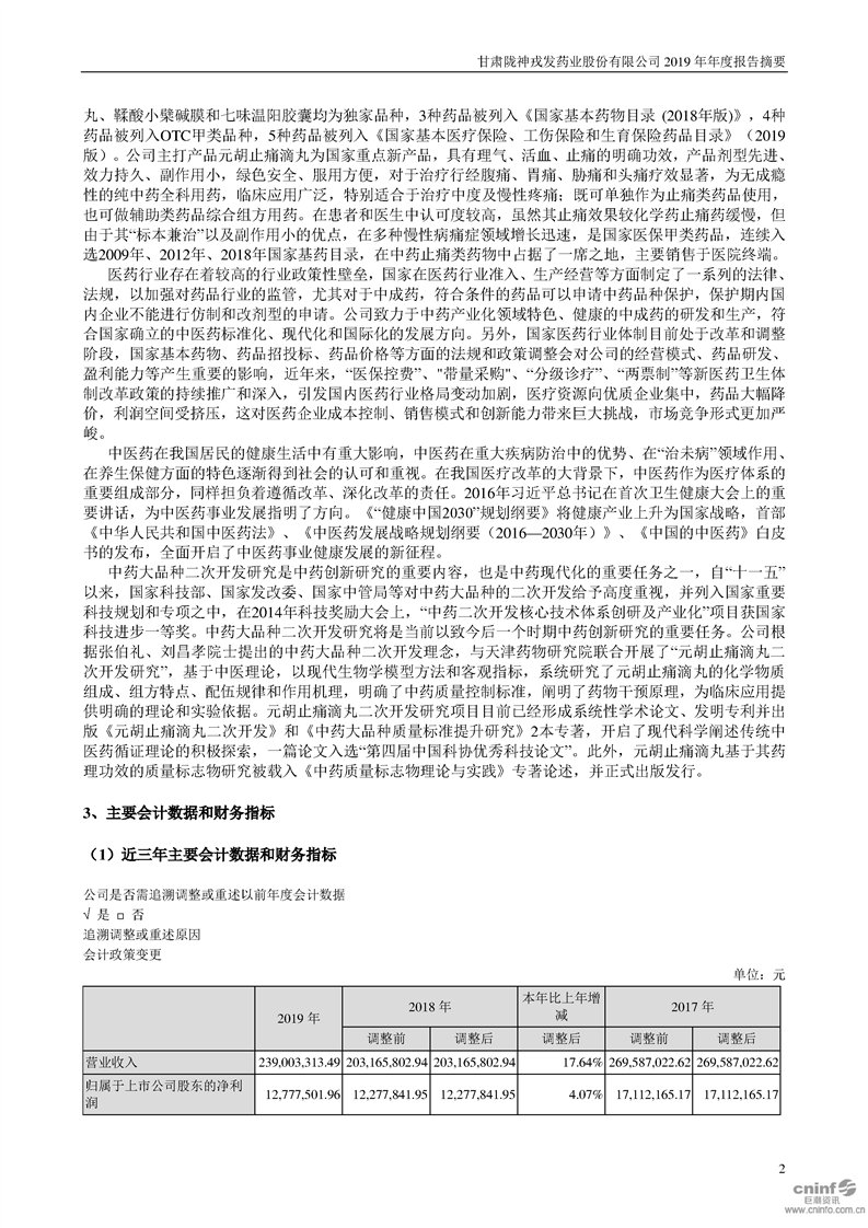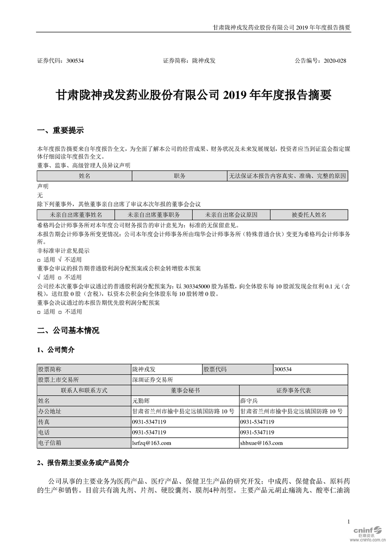 2019年年度报告摘要