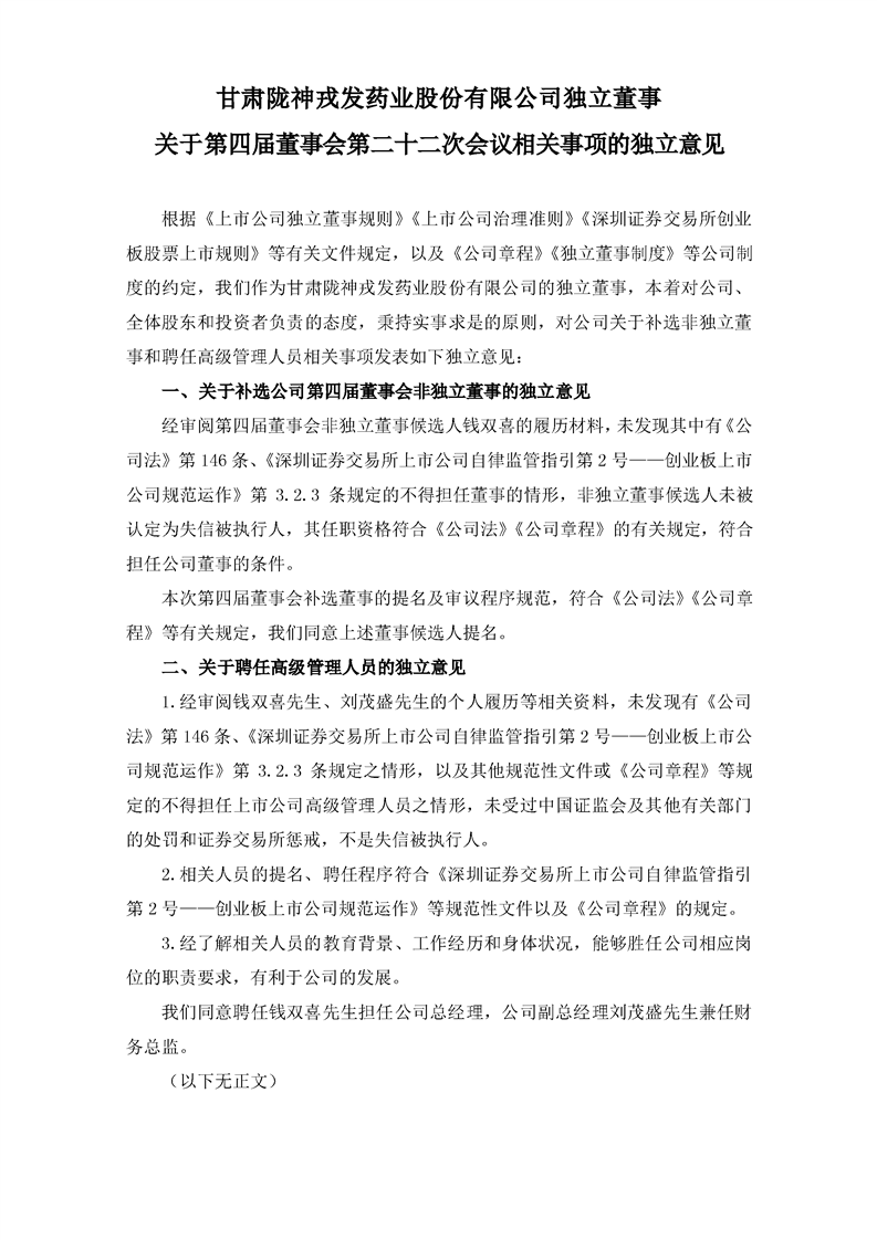 独立董事关于第四届董事会第二十二次会议相关事项的独立意见