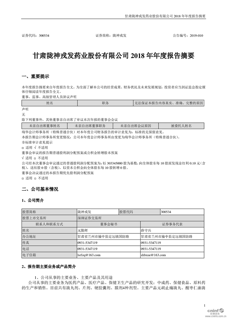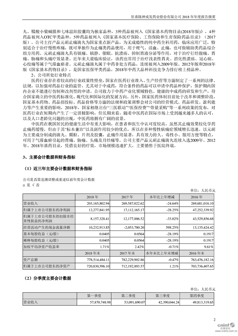 2018 年年度报告摘要