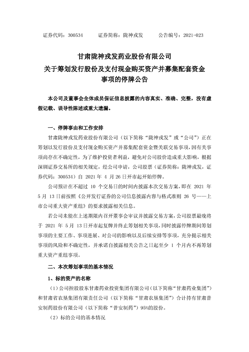 关于筹划发行股份及支付现金购买资产并募集配套资金事项的停牌公告