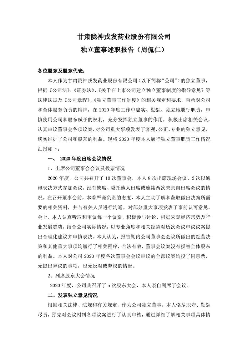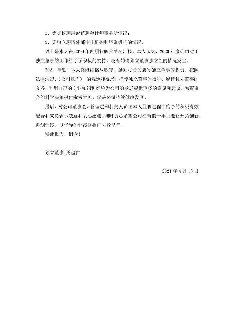 2020年独立董事述职报告(周侃仁)