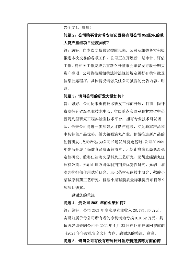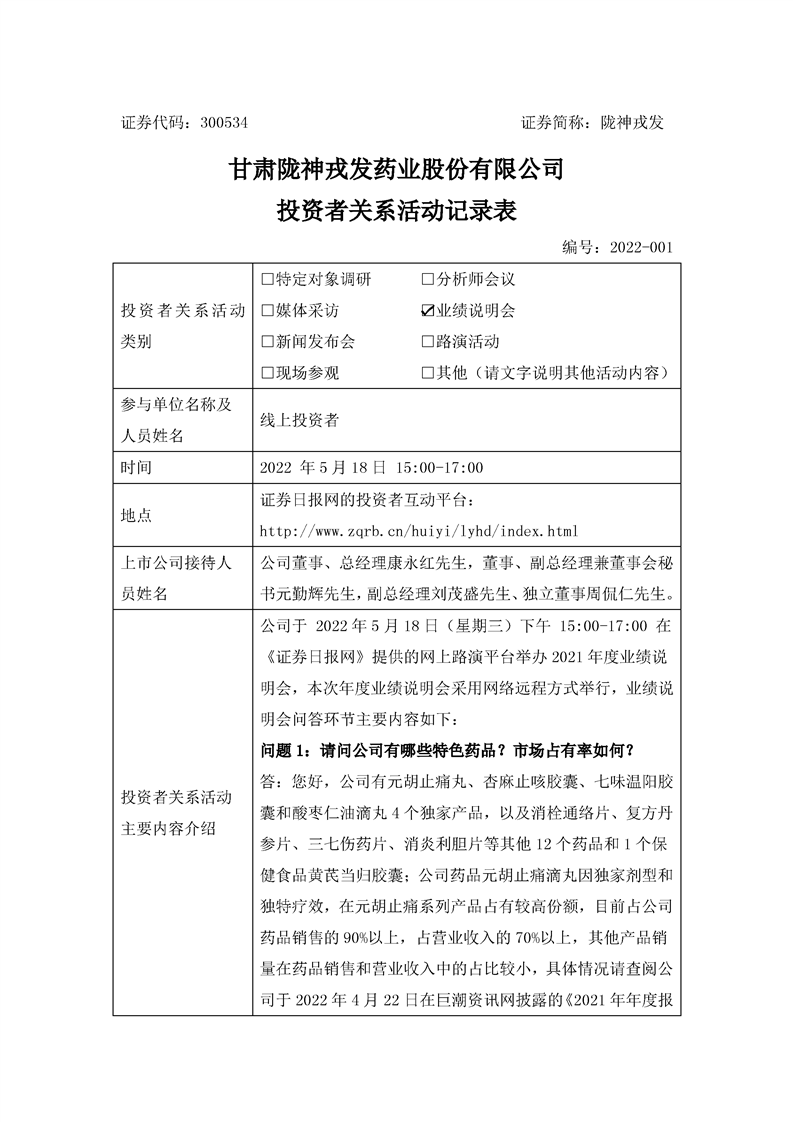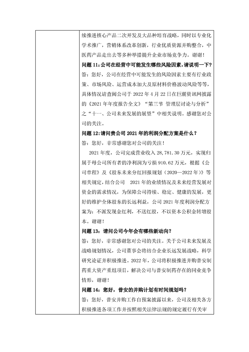 2021年度业绩说明会投资者关系活动记录表