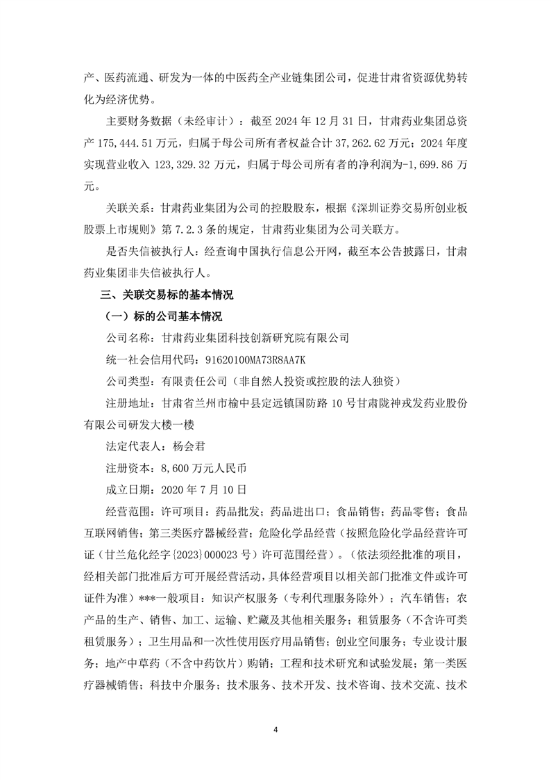 关于现金收购甘肃药业集团科技创新研究院有限公司70%股权暨关联交易的公告