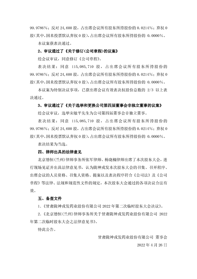 2022年第二次临时股东大会决议公告