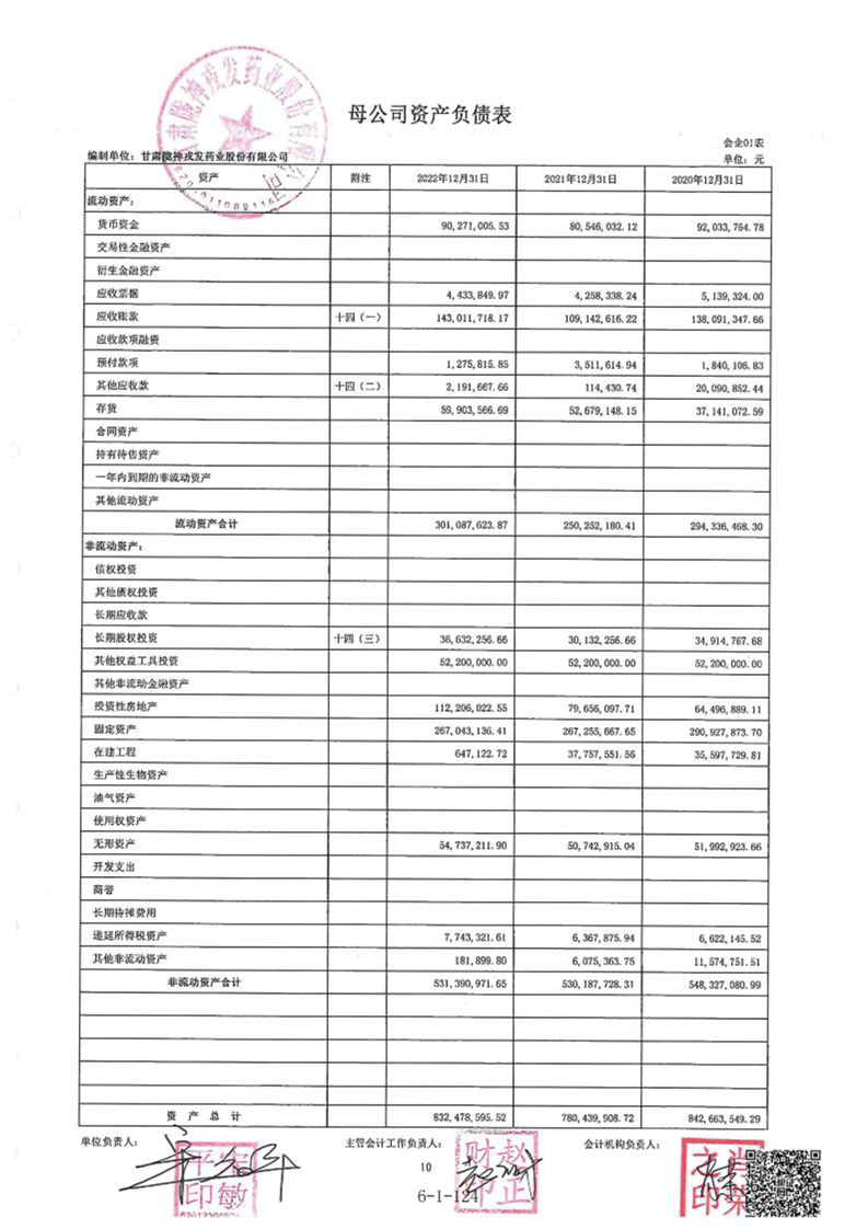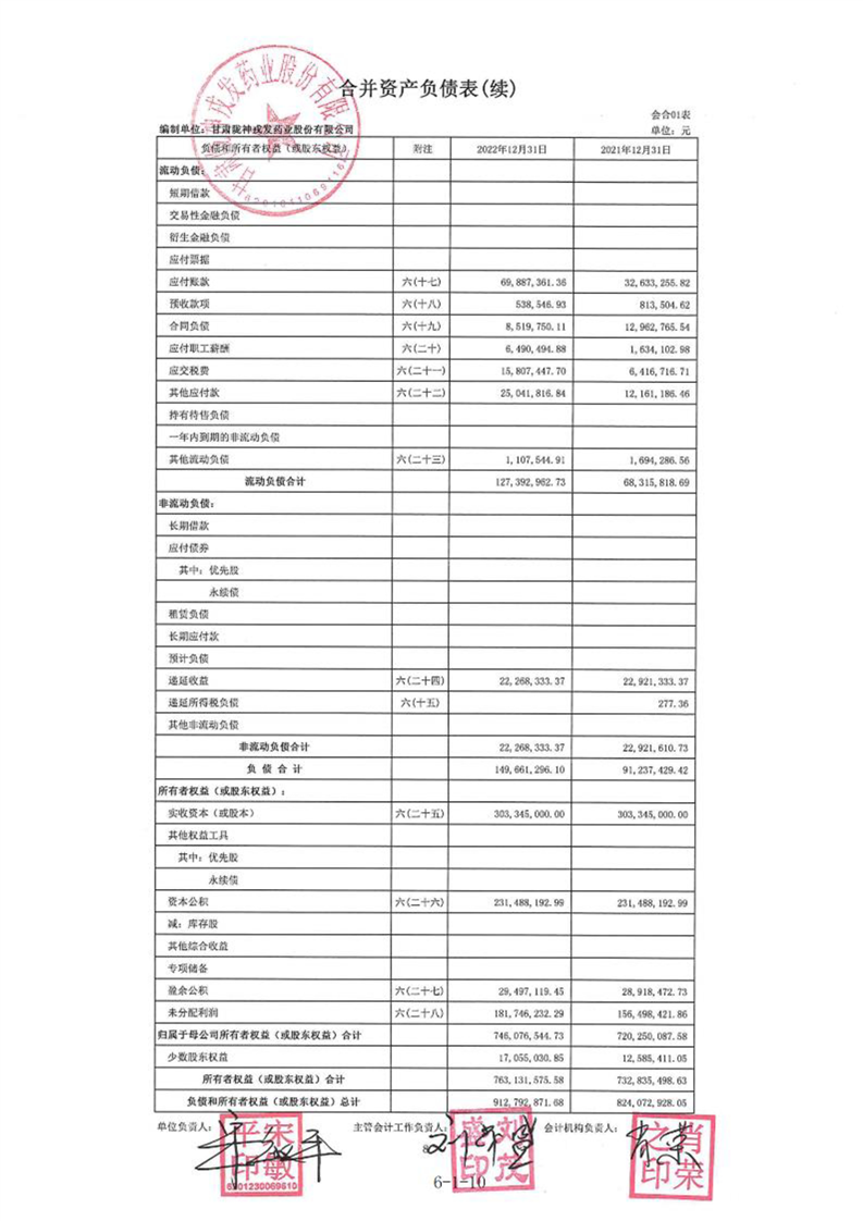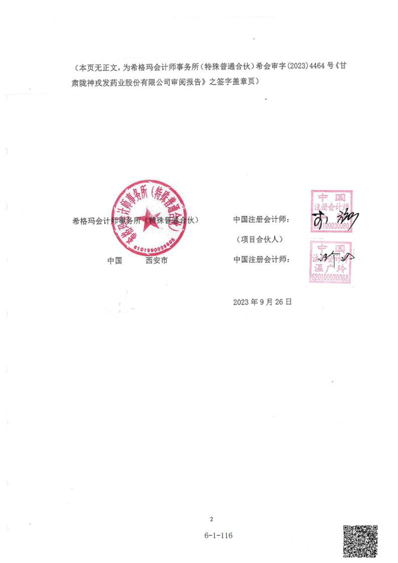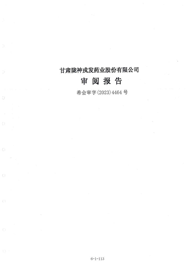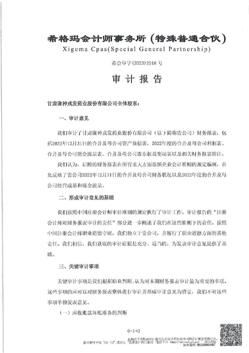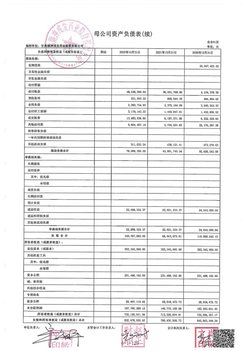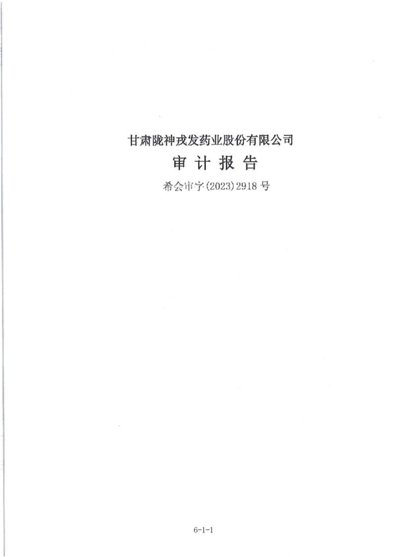 甘肃陇神戎发药业股份有限公司最近一年的财务报告及其审计报告以及最近一期的财务报告