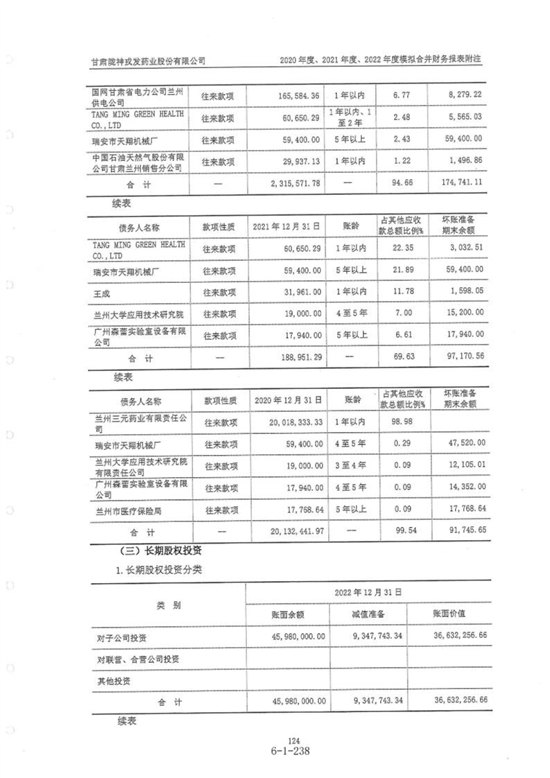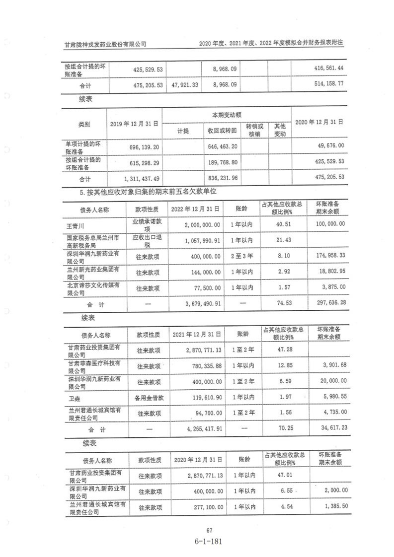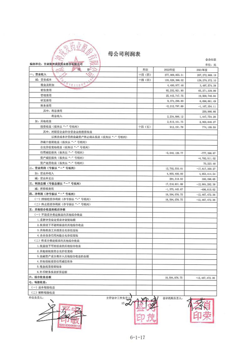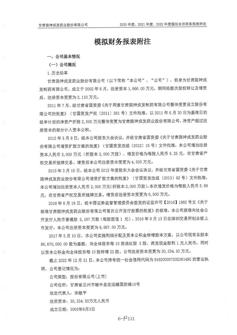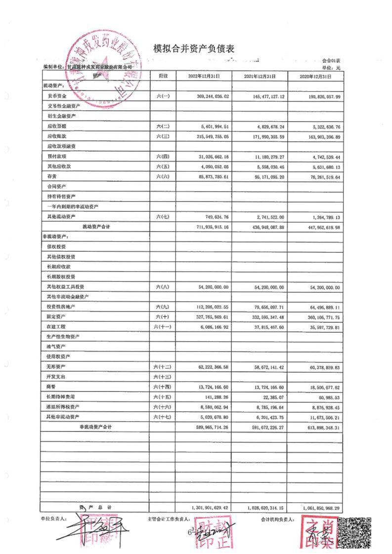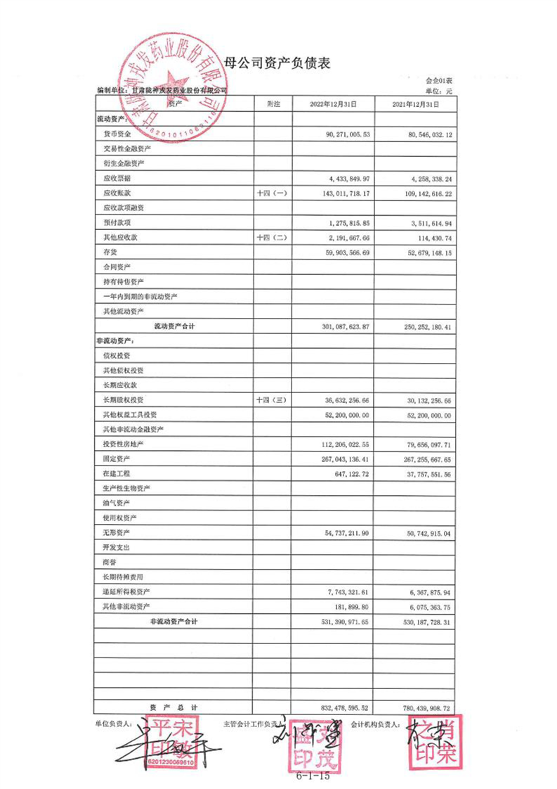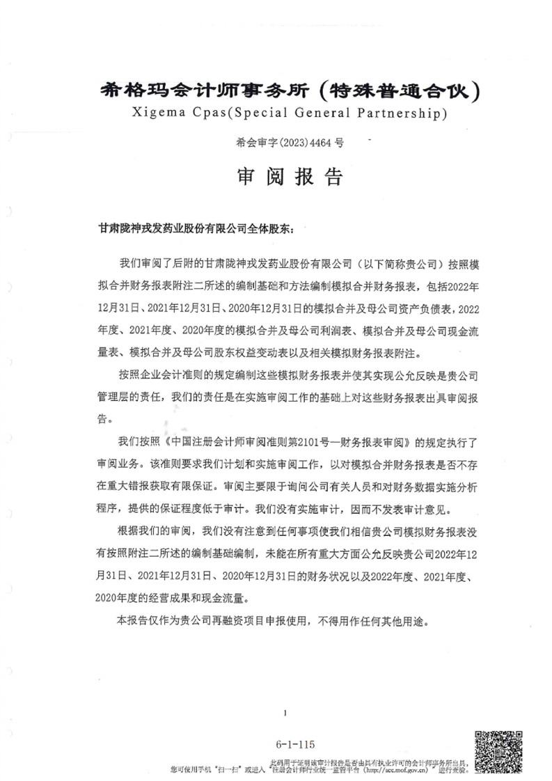 甘肃陇神戎发药业股份有限公司最近一年的财务报告及其审计报告以及最近一期的财务报告