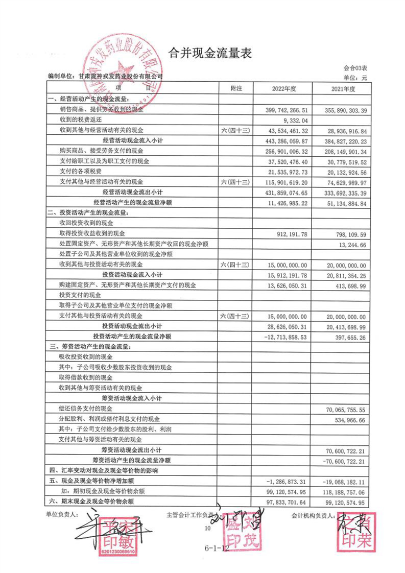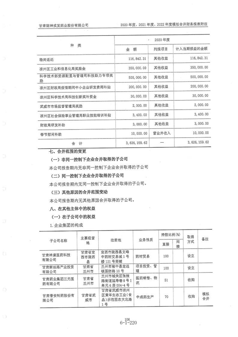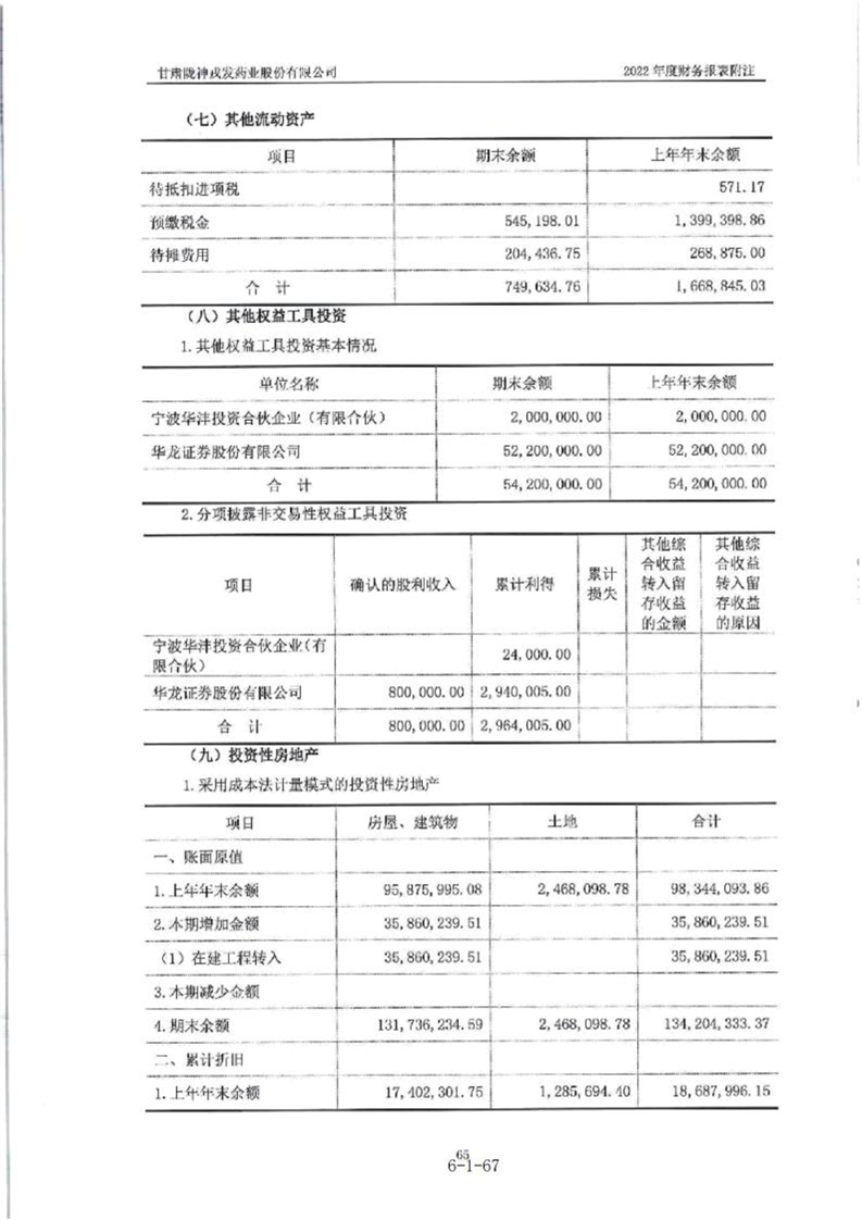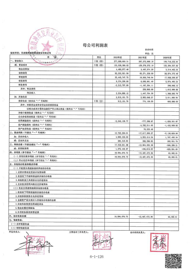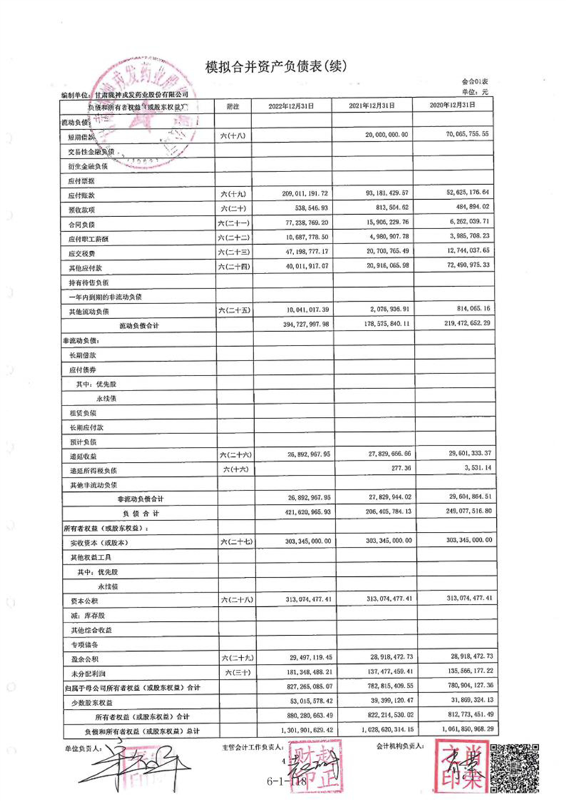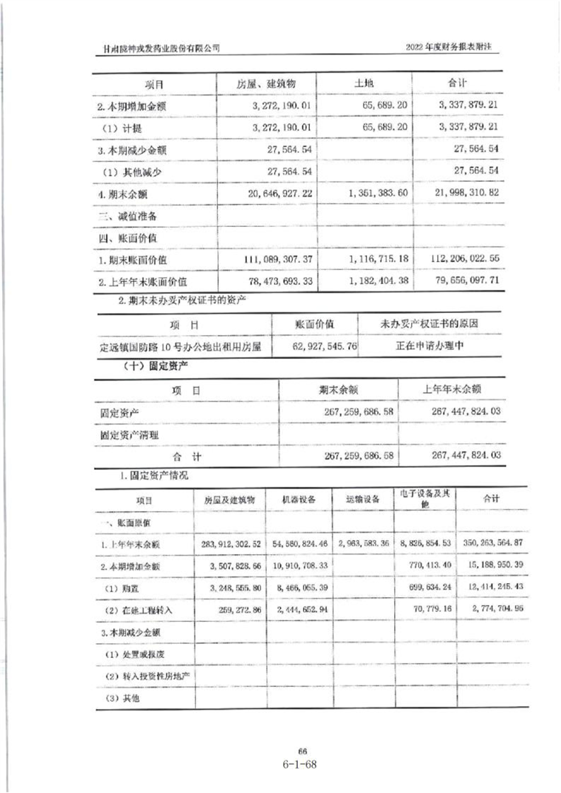甘肃陇神戎发药业股份有限公司最近一年的财务报告及其审计报告以及最近一期的财务报告