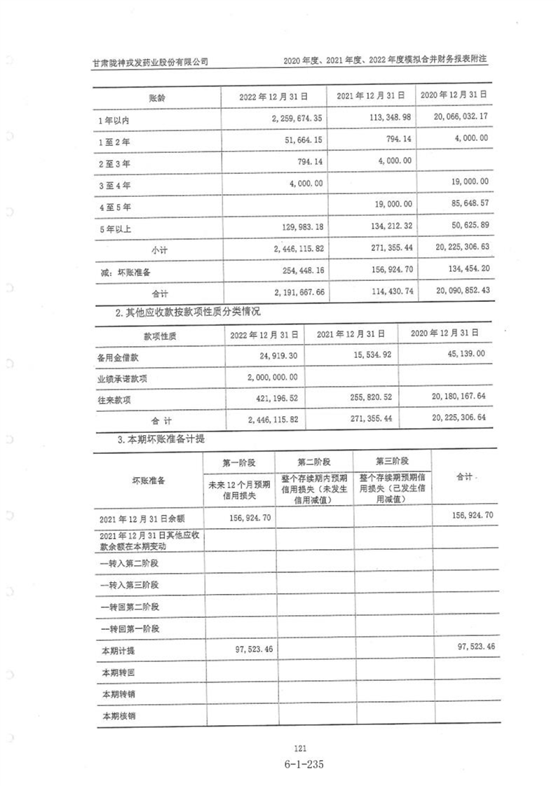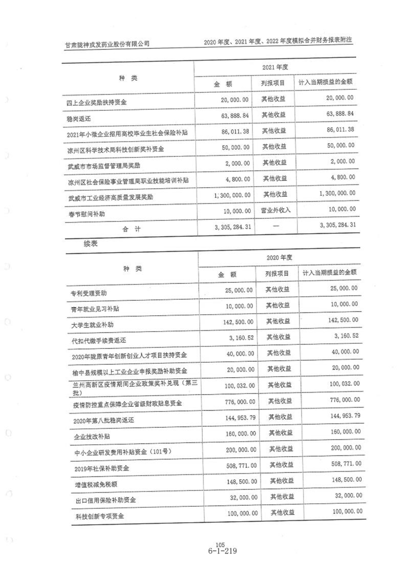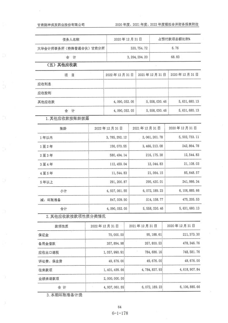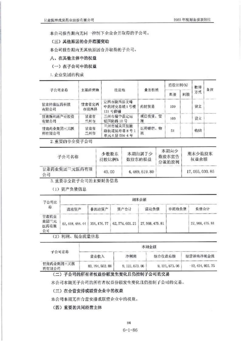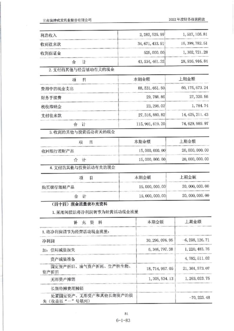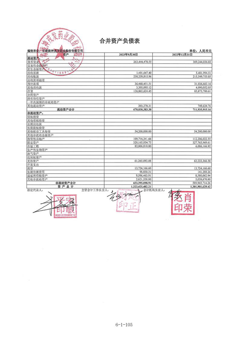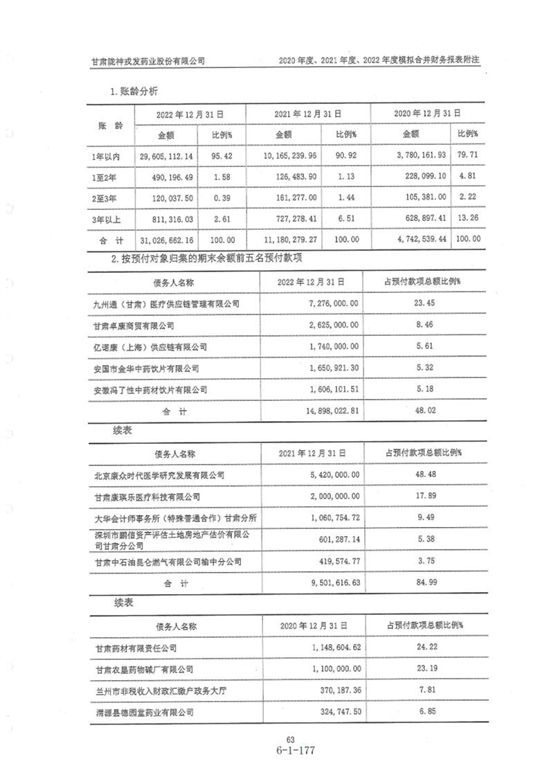 甘肃陇神戎发药业股份有限公司最近一年的财务报告及其审计报告以及最近一期的财务报告