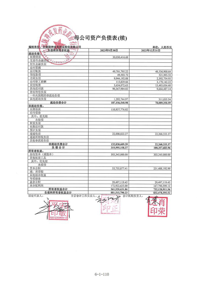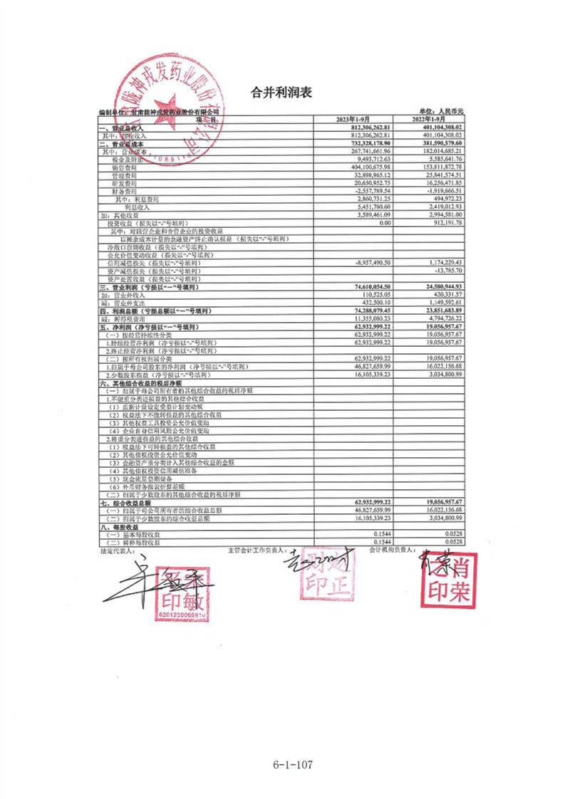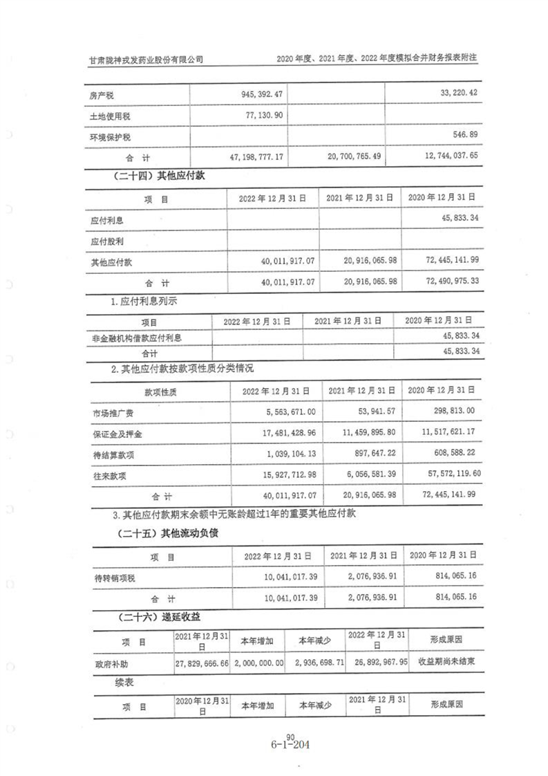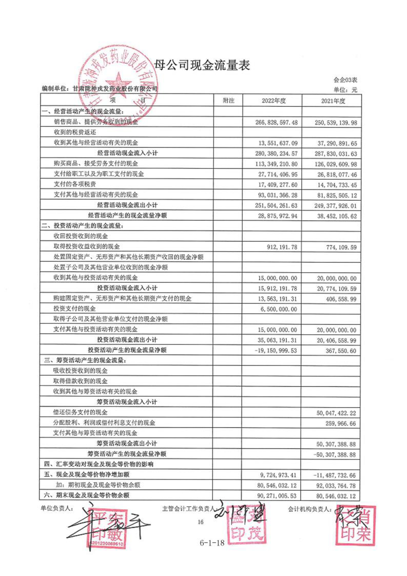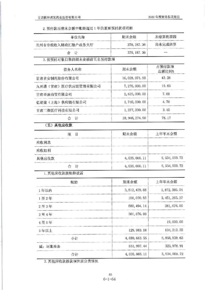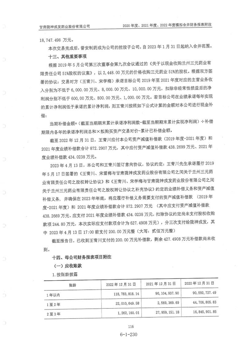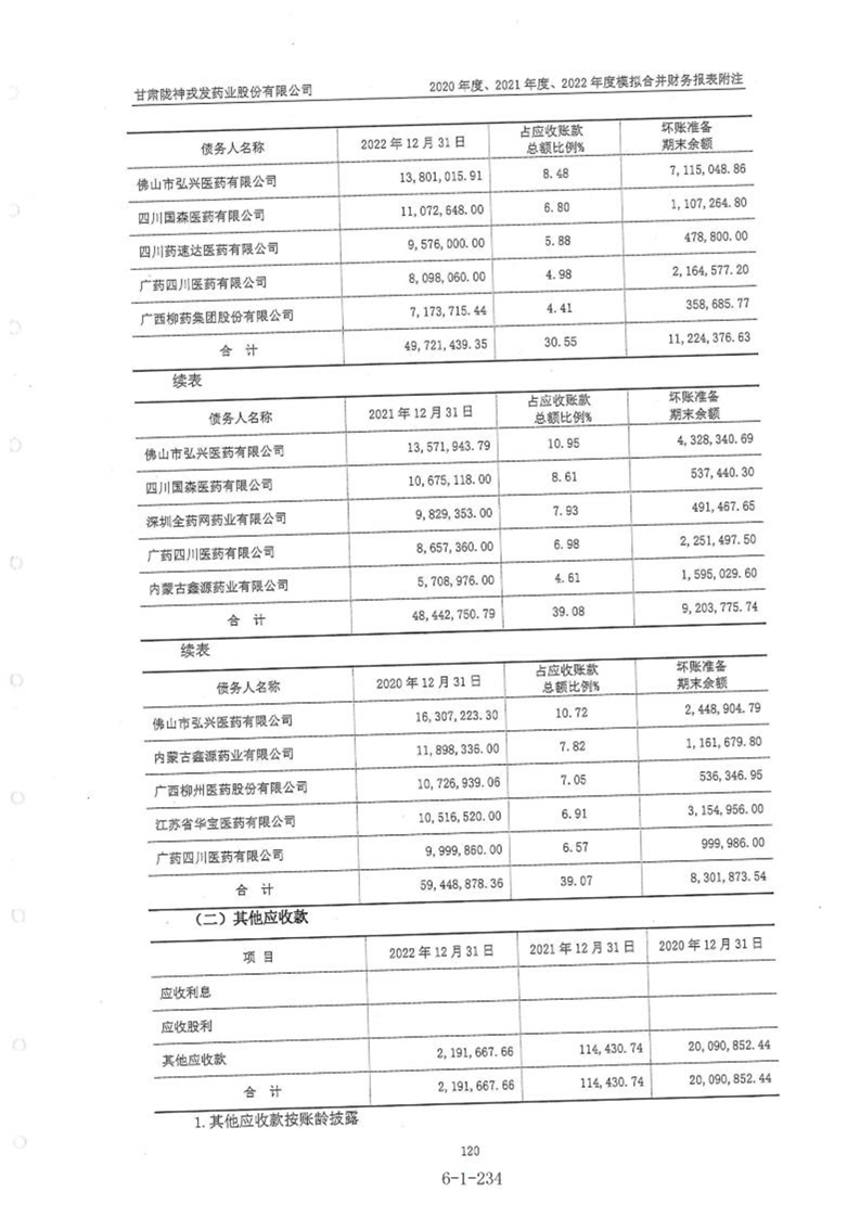 甘肃陇神戎发药业股份有限公司最近一年的财务报告及其审计报告以及最近一期的财务报告