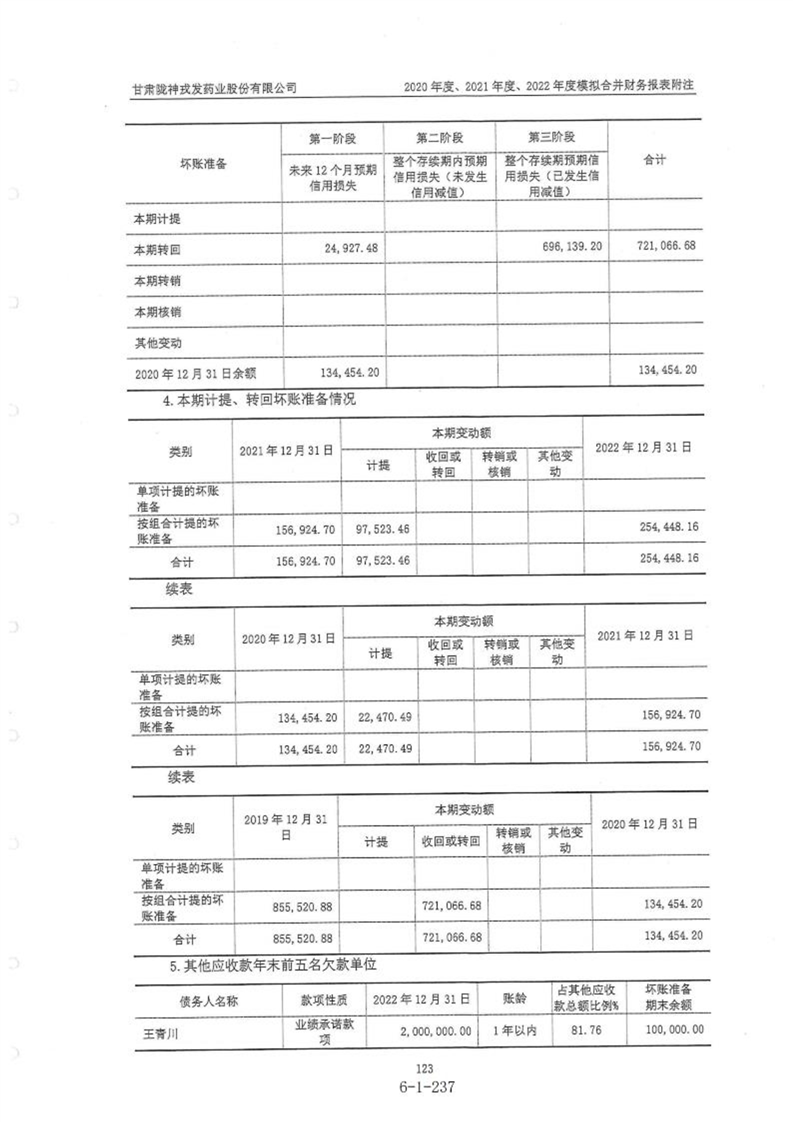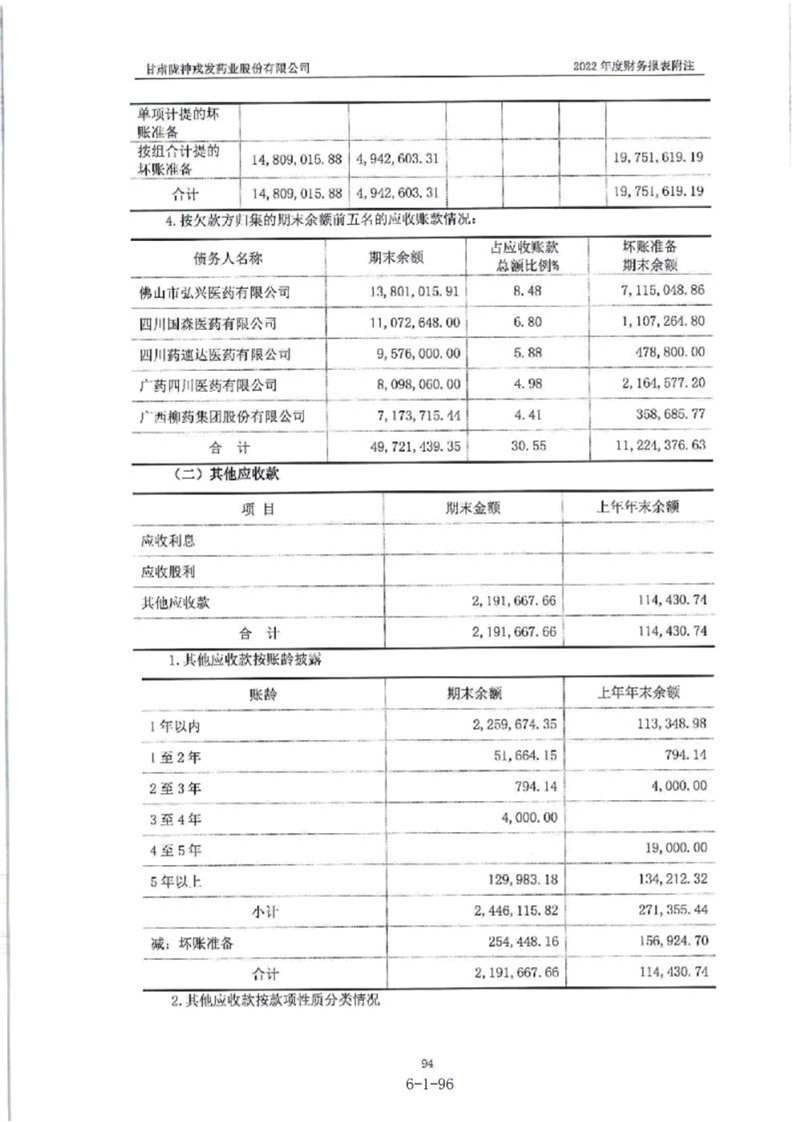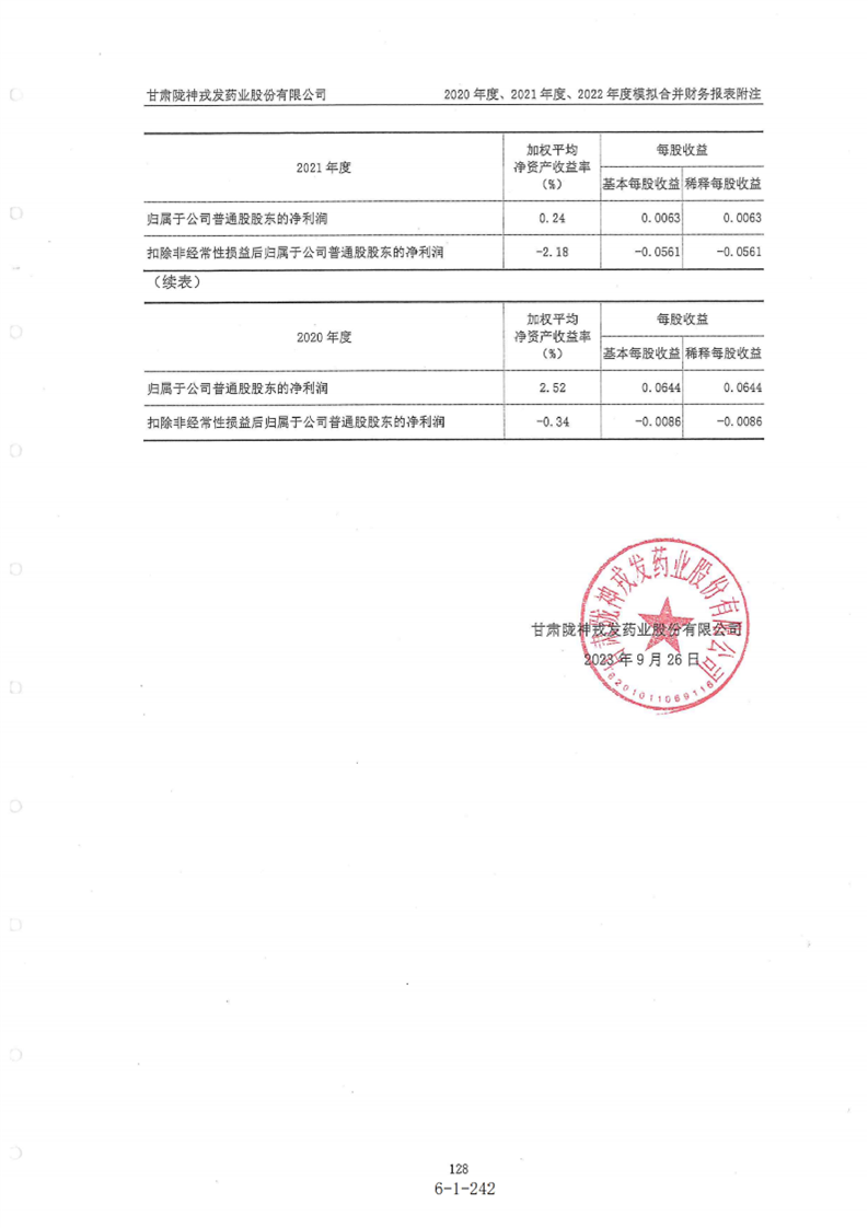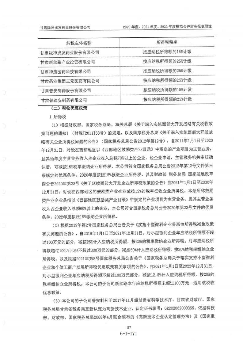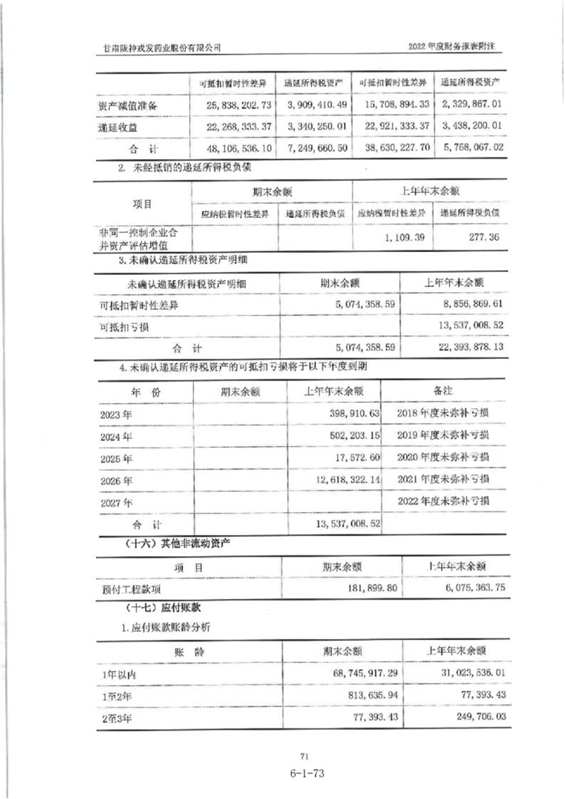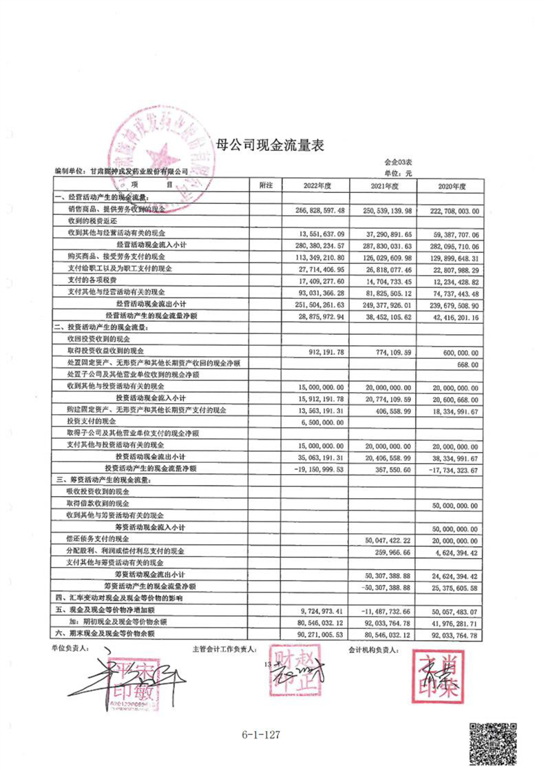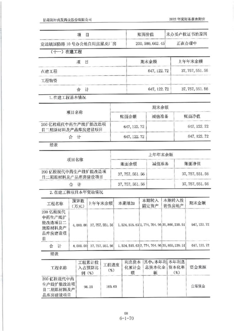甘肃陇神戎发药业股份有限公司最近一年的财务报告及其审计报告以及最近一期的财务报告