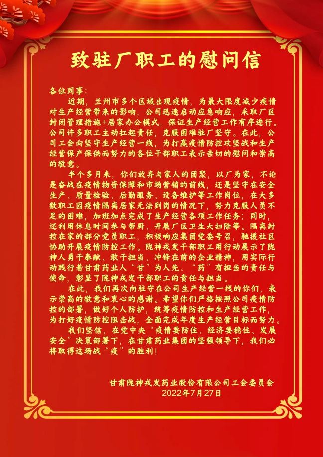 致驻厂职工的慰问信
