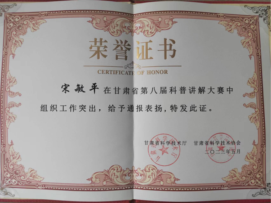 【热烈祝贺】甘肃药业集团陇神戎发董事长宋敏平荣膺“甘肃省第八届科普讲解大赛”优秀组织奖