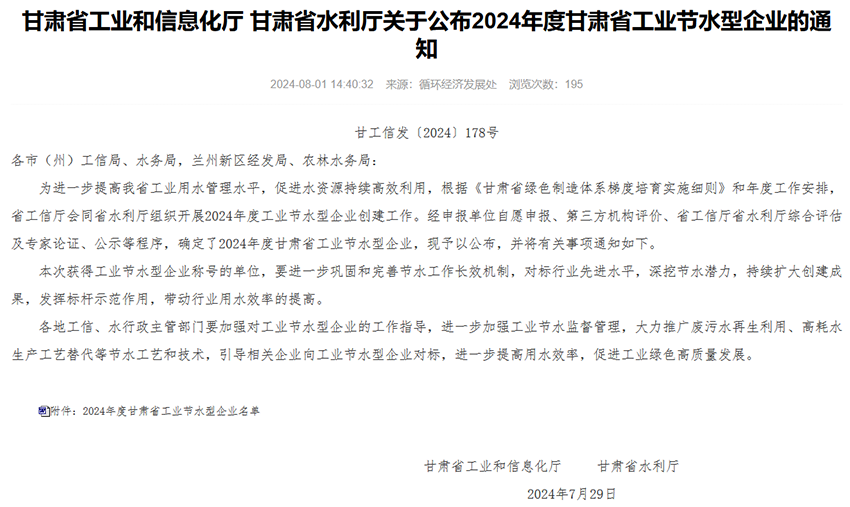 ããè¿æ¥ï¼ç工信å åçæ°´å©å èååæï¼è¡¨å½°äºä¸æ¹2024å¹´çèçå·¥ä¸èæ°´åä¼ä¸ï¼æå ¬å¸æ¦ä¸æåï¼è£è·âçèçå·¥ä¸èæ°´åä¼ä¸âç§°å·ã