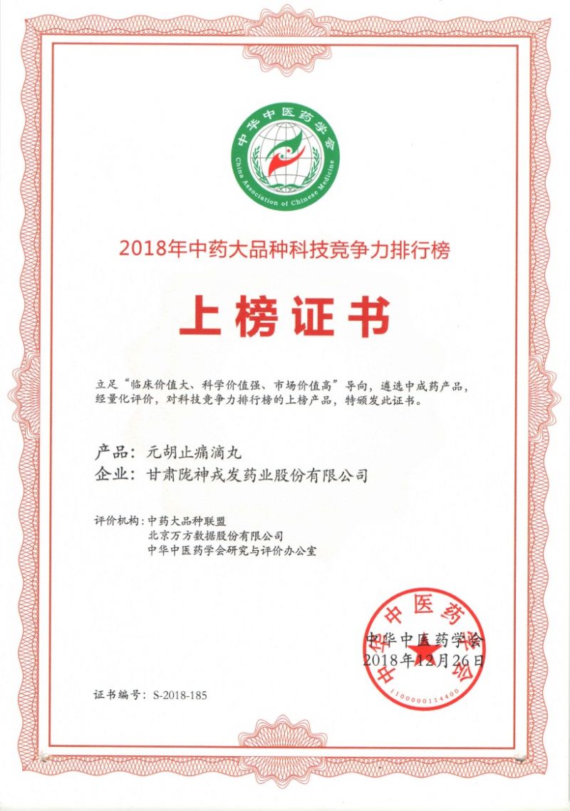 ãããä¸è¯å¤§åç§ç§æç«äºåæè¡æ¦ãï¼2018çï¼æ¯ç±ä¸è¯å¤§åç§èçèå䏿¹æ°æ®åä¸åä¸å»è¯å¦ä¼å ±åç¼å¶ï¼ä»å ¨å½59067个已ä¸å¸ä¸æè¯äº§åä¸ï¼ä» â临åºãç§å¦ãå¸åºâä¸ä¸ªç»´åº¦ï¼åºäºè¿åå¹´å ¬å¼æ°æ®åä¸å å ±è¯è¯ä»·æ¨¡åï¼éç¹åç §äº§åç§ææå ¥ï¼ç§ç 项ç®ï¼ãç§æäº§åºï¼ç§ç 论æãç¥è¯äº§æï¼åç§æå¥å±ï¼æ¿åºå¥ãå¦ä¼å¥ãä¸å©å¥ï¼çç§æç«äºåè¯ä¼°ææ ï¼é´éåºä¸´åºå¸¸ç¨çä¼å¿åç§ï¼å¹¶æç §ä¸è¯å¤§åç§ç§æç«äºåç¾å¼ºæ¦ãéæ³¨å°ç¾å¼ºæ¦ã18个治çé¢åæ¦åå30个çåºæ¦åè¿è¡åç±»åå¸ãæ¤æ¬¡æè¡æ¦å ±æ365个产å䏿¦ãå è¡æ¢ç滴丸è½è£ç»ä¸è¯å¤§åç§ç§æç«äºåæè¡æ¦ï¼å¹¶å¨ç¸åºæ¦åä¸åå¾è¾å¥½çæåï¼ä¸»è¦è¿æ¯å½åäºè¿å¹´æ¥å ¬å¸å´ç»è¯¥äº§åæç»å¼å±çä¸ç³»åææ¯åæ°å·¥ä½ã