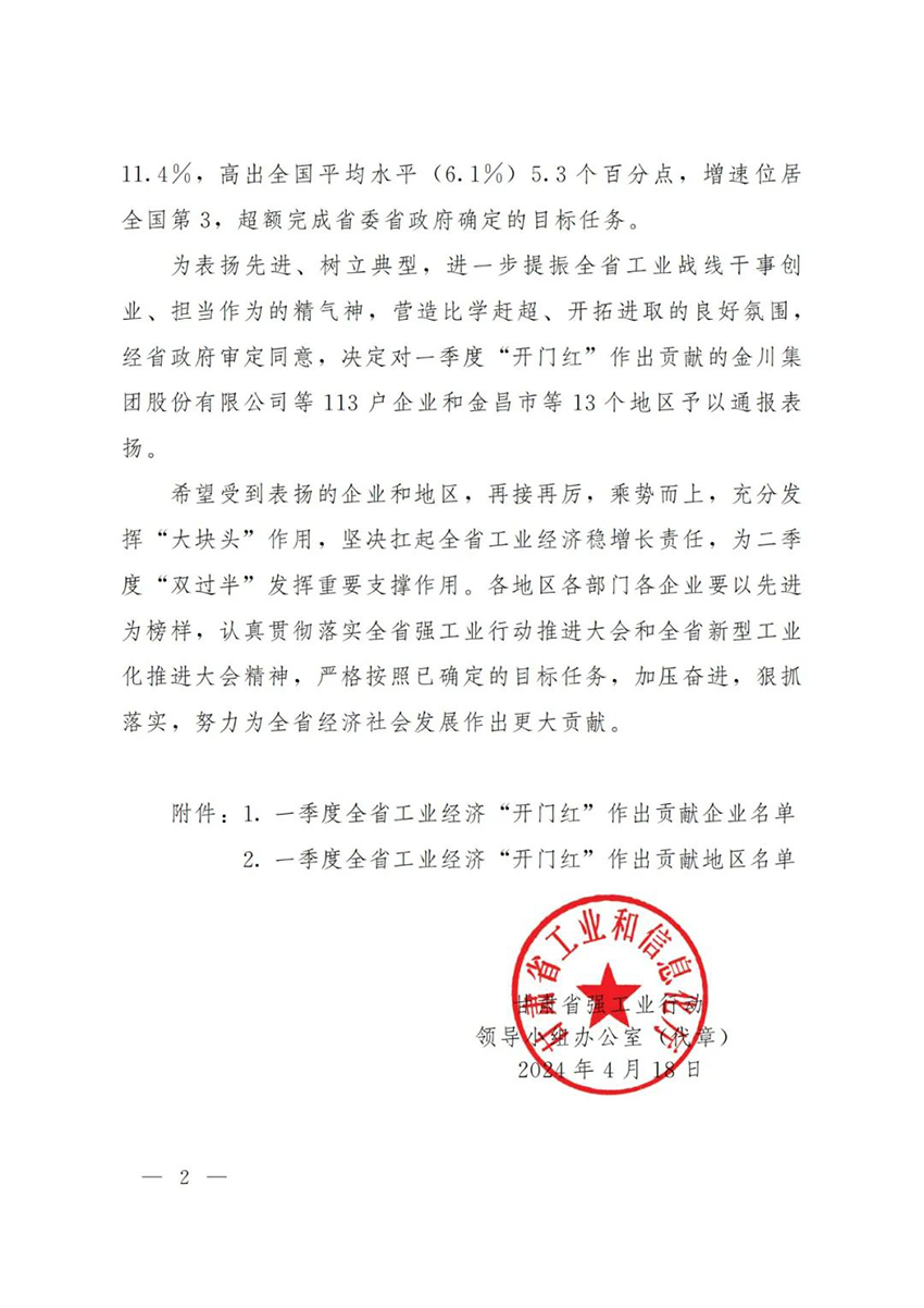 ããæ ¹æ®ãçèç强工ä¸è¡å¨é¢å¯¼å°ç»åå ¬å®¤å ³äºè¡¨æ¬2024å¹´ä¸å£åº¦å ¨çå·¥ä¸ç»æµâå¼é¨çº¢âä½åºçªåºè´¡ç®ä¼ä¸åå°åºç鿥ãï¼ç工信åã2024ã96å·ï¼ï¼çèè¯ä¸éå¢ååå ¬å¸æ®å®å¶è¯è¢«ç工信å è¯ä¸º2024å¹´ä¸å£åº¦å ¨çå·¥ä¸ç»æµâå¼é¨çº¢âä½åºè´¡ç®ä¼ä¸å¹¶ç»äºéæ¥è¡¨æ¬ã