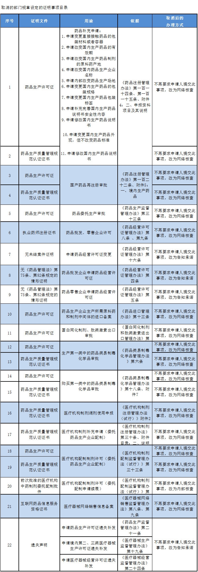 国家药监局表示,根据《国务院办公厅关于做好证明事项清理工作的通知》要求,为进一步减证便民、优化服务,国家药品监督管理局决定取消36项证明事项。