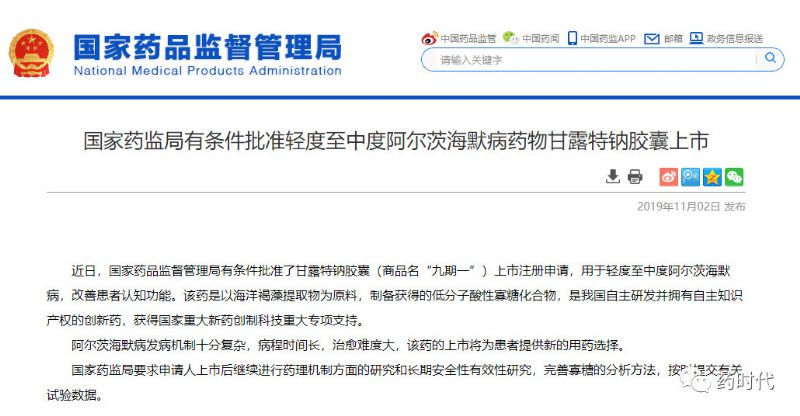 国家药监局有条件批准轻度至中度阿尔茨海默病药物甘露特钠胶囊上市