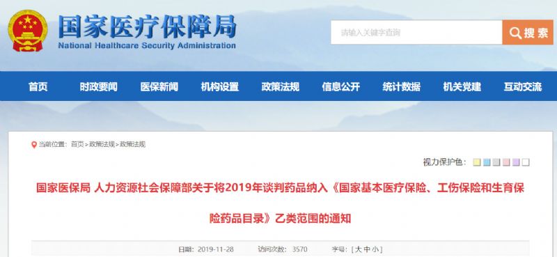 为贯彻è½å®å ä¸å¤®ãå½å¡é¢å³çé¨ç½²ï¼æ ¹æ®2019å¹´å½å®¶å»ä¿è¯åç®å½è°æ´å·¥ä½å®æï¼å½å®¶å»ä¿å±ä¼å人åèµæºç¤¾ä¼ä¿éé¨ç»ç»ä¸å®¶æç¨åºå¼å±äº2019å¹´å½å®¶å»ä¿è¯åç®å½åå ¥è°å¤ï¼å ±97个è¯åè°å¤æåï¼éä»¶1ï¼å¹¶ç¡®å®äºæ¯ä»æ åï¼çº³å ¥ãå½å®¶åºæ¬å»çä¿é©ã工伤ä¿é©åçè²ä¿é©è¯åç®å½ãï¼ä»¥ä¸ç®ç§°ç®å½ï¼ä¹ç±»èå´ã为å好è°å¤è¯åè½å°å·¥ä½ï¼ç¡®ä¿å¹¿å¤§åä¿æ£è åå®åçï¼ç°å°æå ³äºé¡¹éç¥å¦ä¸ï¼