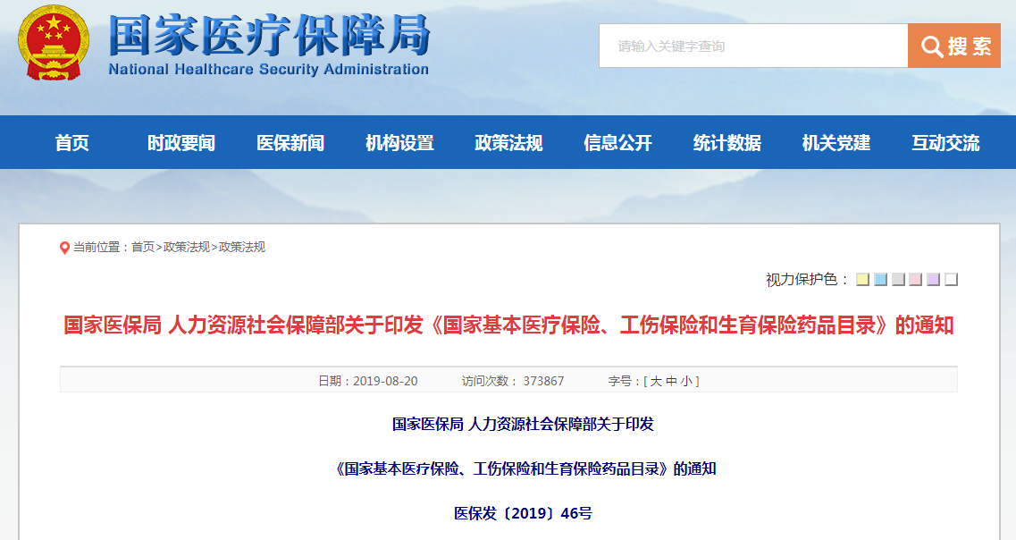 å½å®¶å»ä¿å± 人åèµæºç¤¾ä¼ä¿éé¨å ³äºå°å ãå½å®¶åºæ¬å»çä¿é©ã工伤ä¿é©åçè²ä¿é©è¯åç®å½ãçéç¥ å»ä¿åã2019ã46å·