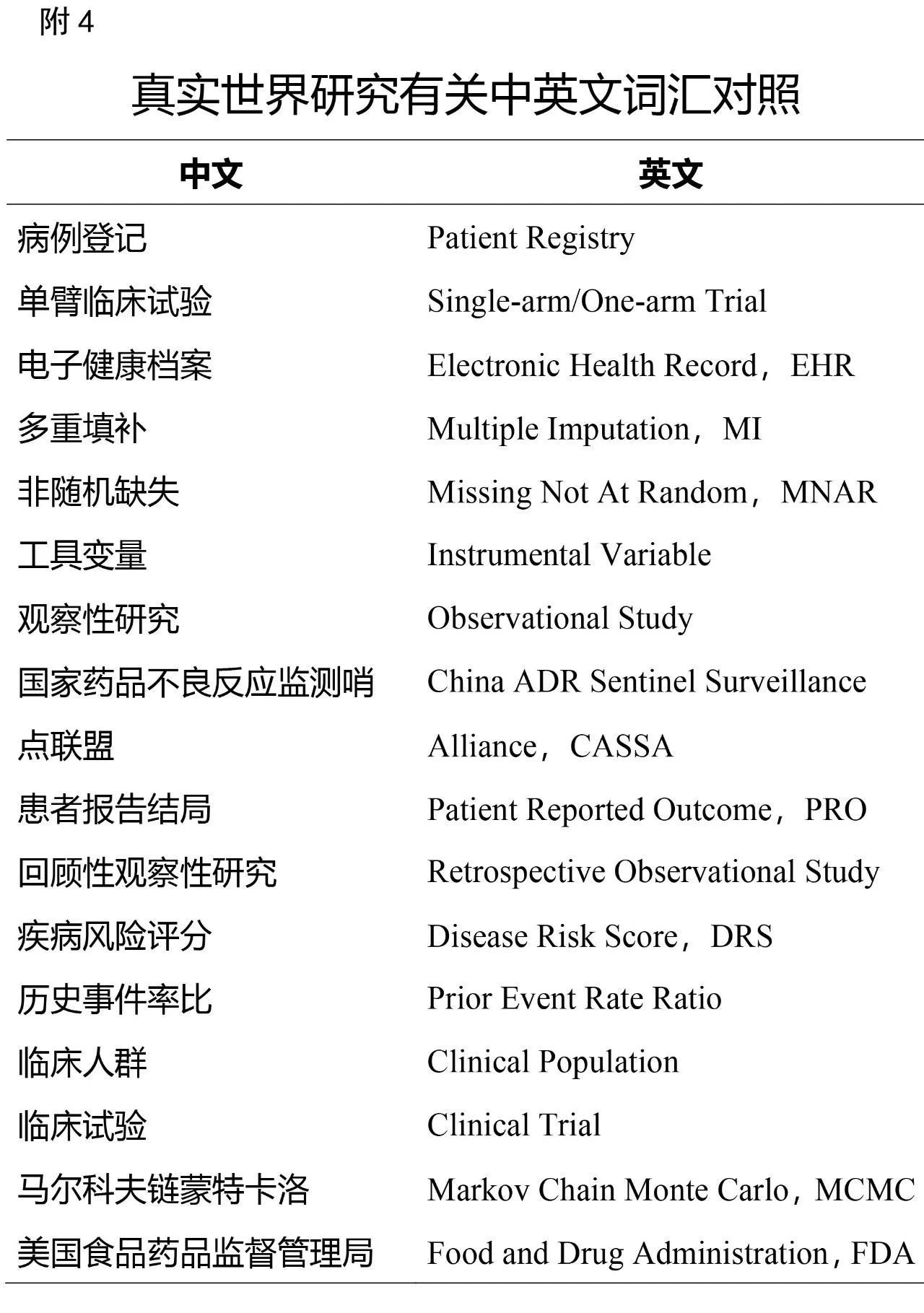 19.真实世界证据(Real-World Evidence,RWE):指通过对适用的真实世界数据进行恰当和充分的分析所获得的关于药物的使用情况和潜在获益-风险的临床证据。